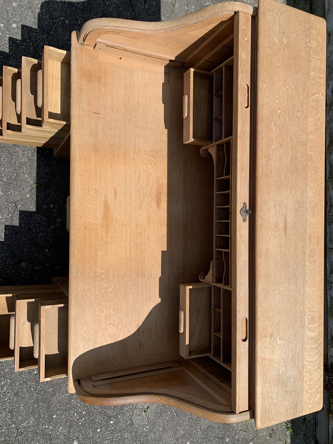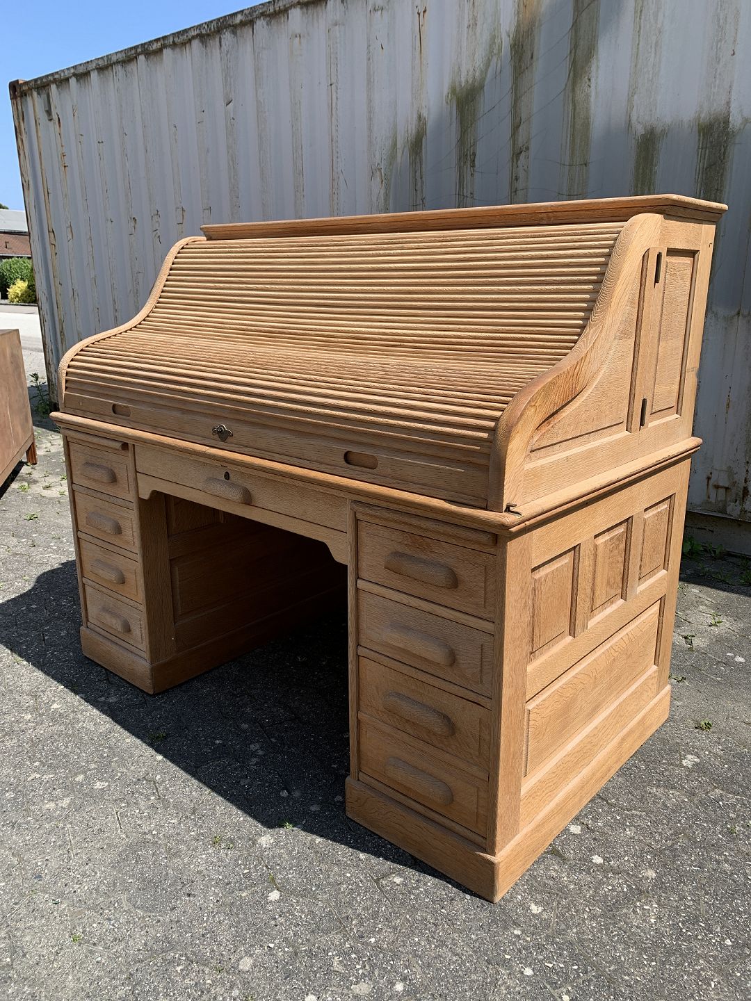 Text available in Danish: Amrikansk skrivebord i massivt egetræ, fra 1920erne.