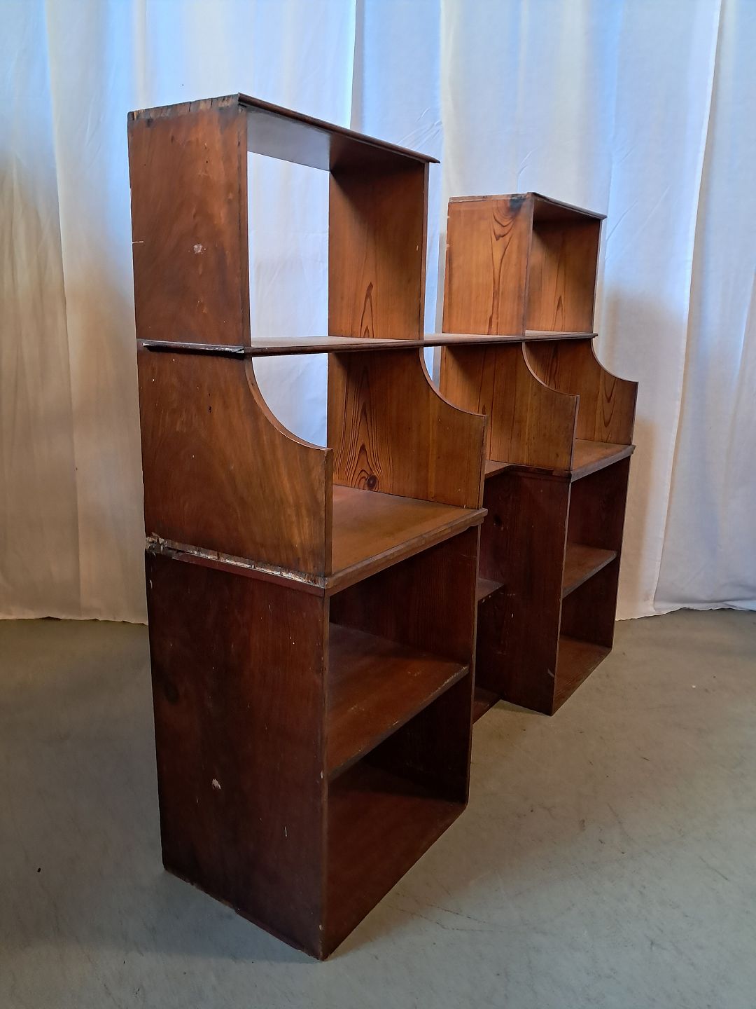 Reol i fineret mahogni og massivt fyrretræ, fra 1900erne.