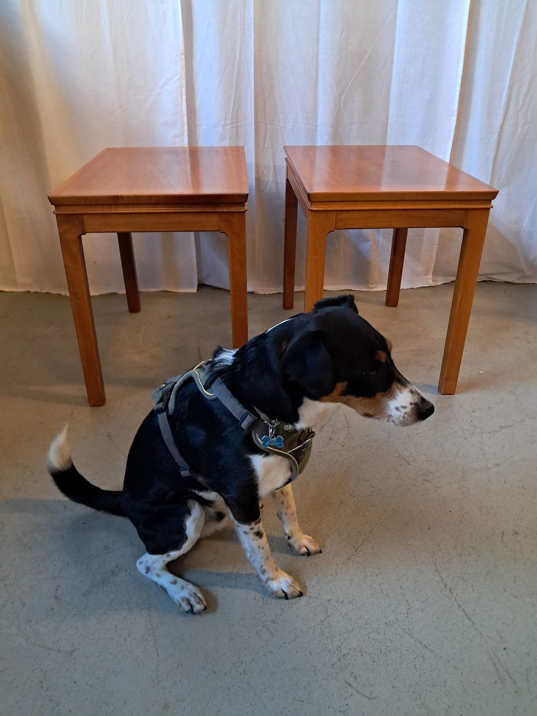 2 Lampeborde i fineret mahogni, fra 1990erne.