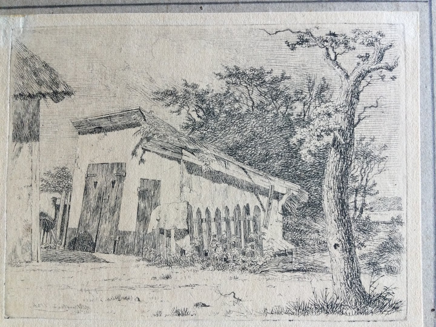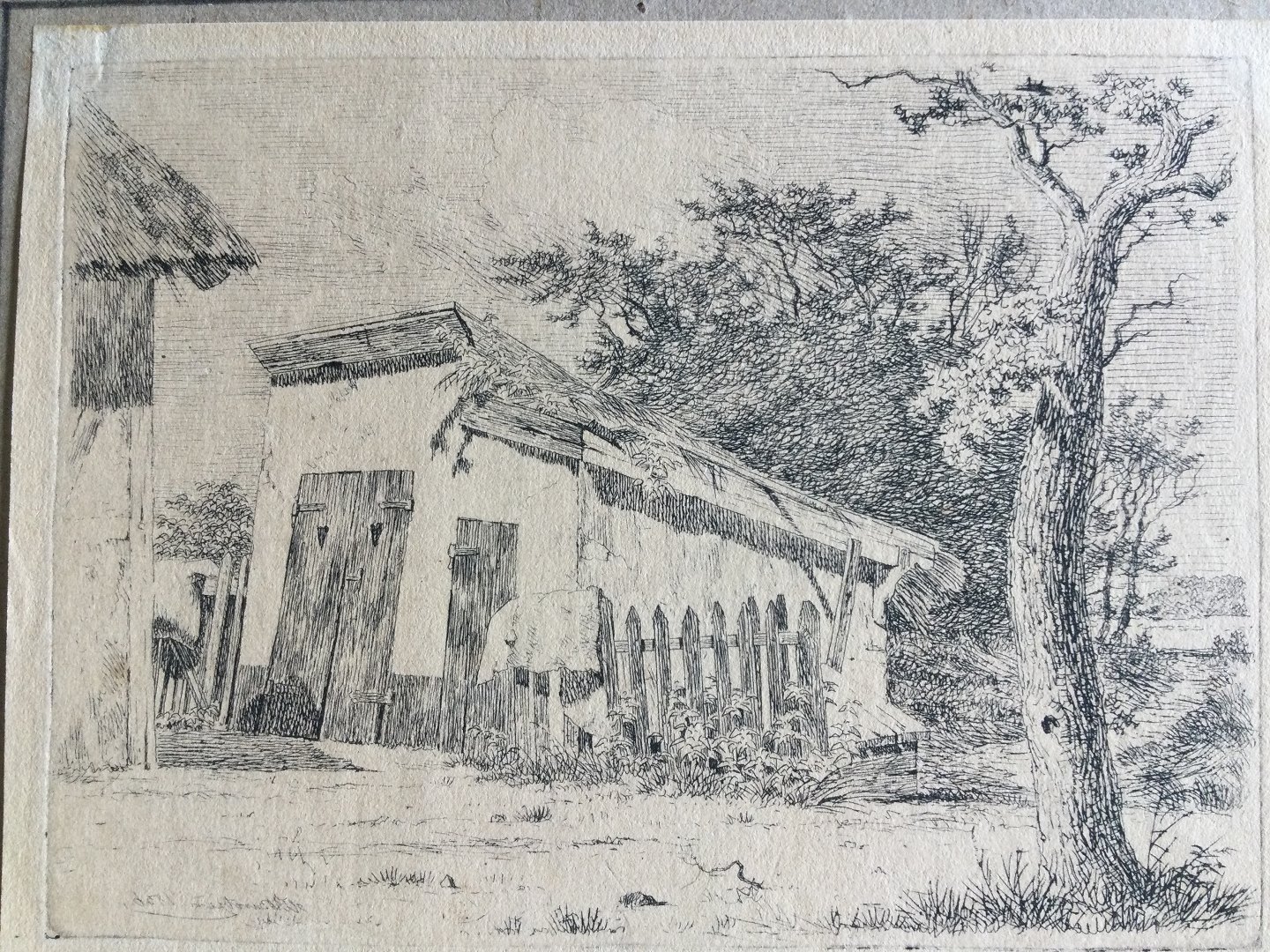 Radering af Heinrich Buntzen (1803-92) - Landskab med træ og bygning 1836.