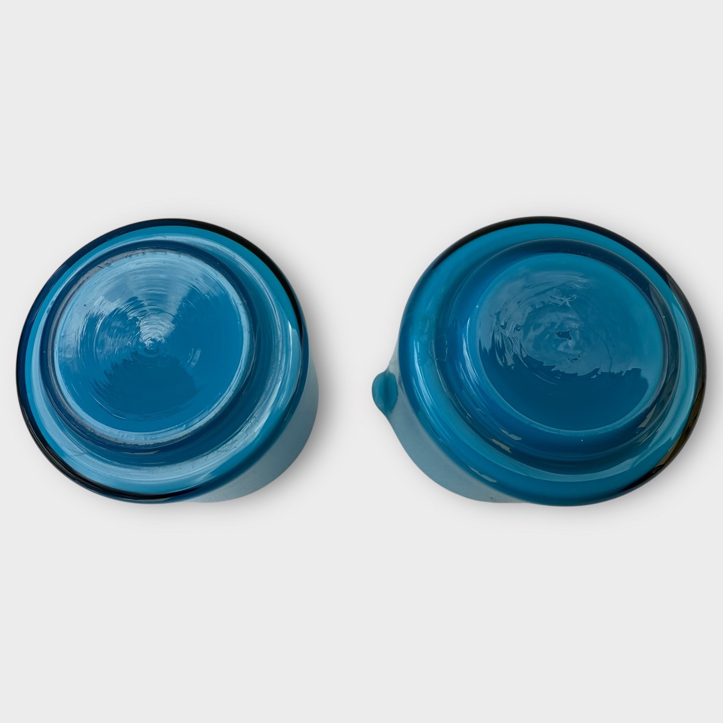 Holmegaard, palet, blåt sukker og fløde sæt, højde 6,5cm, diameter 6,5cm, Sukkerskålen med en lille ujævnhed i kanten - ikke et skår (se foto) ellers pæn stand