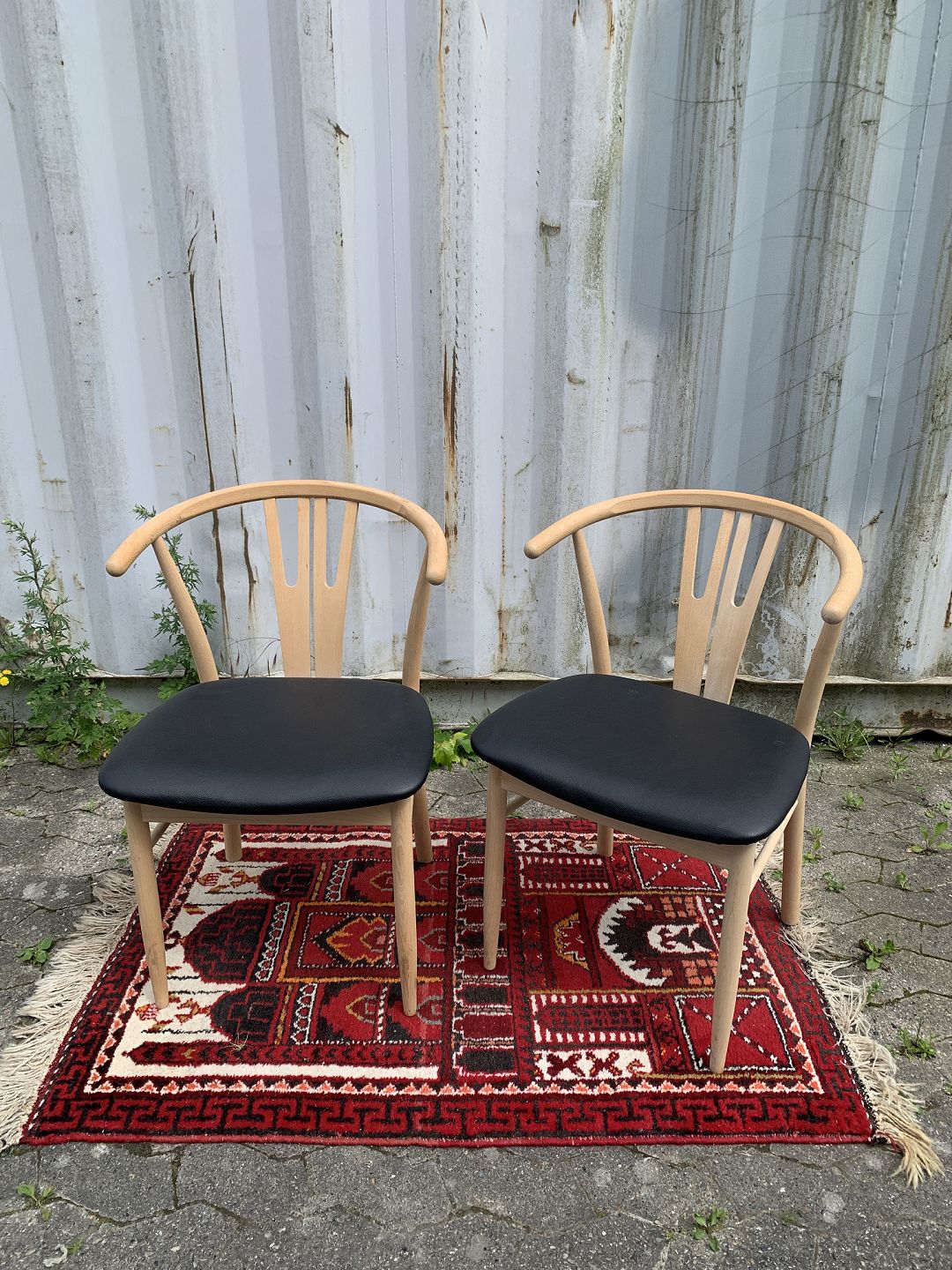 2 stole i massivt bøgetræ med kunstlæder betræk, fra 2010erne.