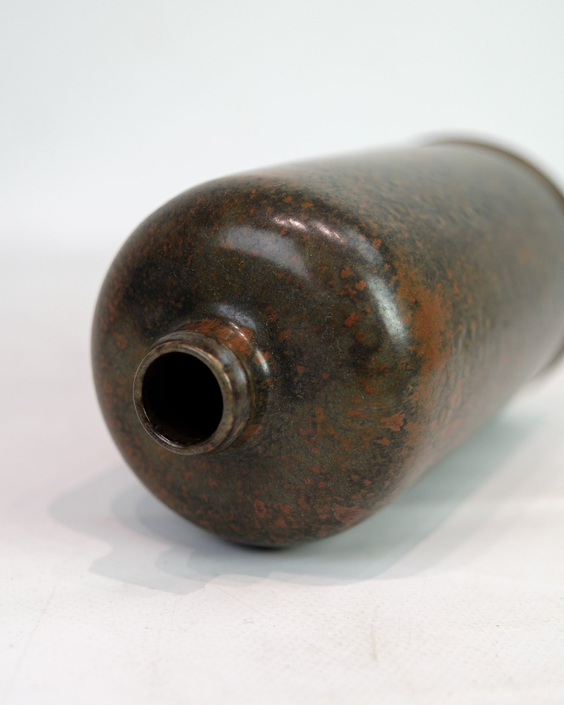 Keramisk vase fra 1940’erne designet af Nathalie Krebs for Saxbo. Udført i karakteristisk stentøj med nuanceret glasur i varme orange og brunlige toner.