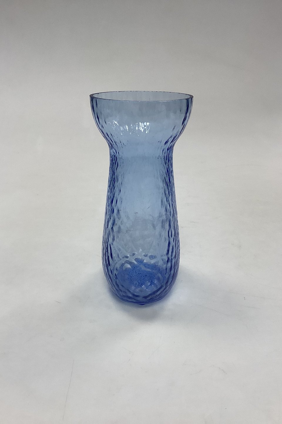 Light Blue Flower BulbVase from Fyens Glass Works. Manufactured from approx. 1960. Ruffled look. Suitable for hyacinths, tulips etc. and narrow enough to fit between window and secondary window.