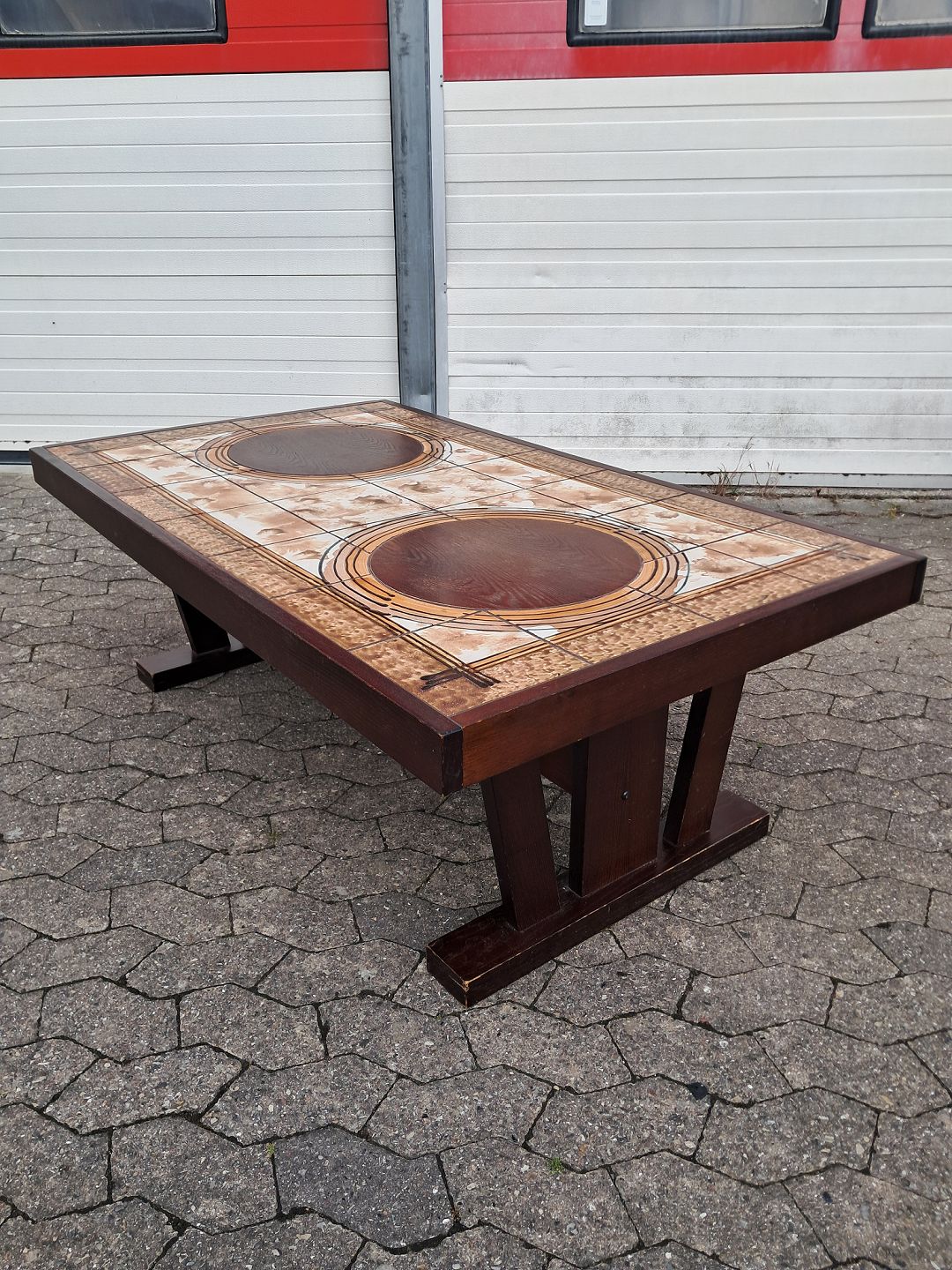Sofabord i fineret egetræ med kakler, fra 1970erne.