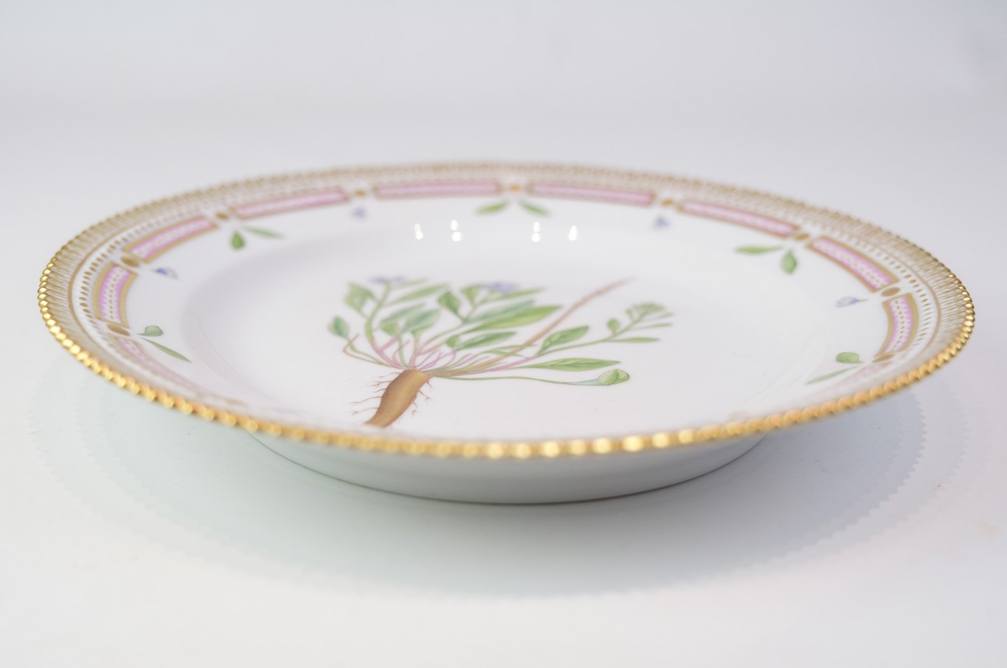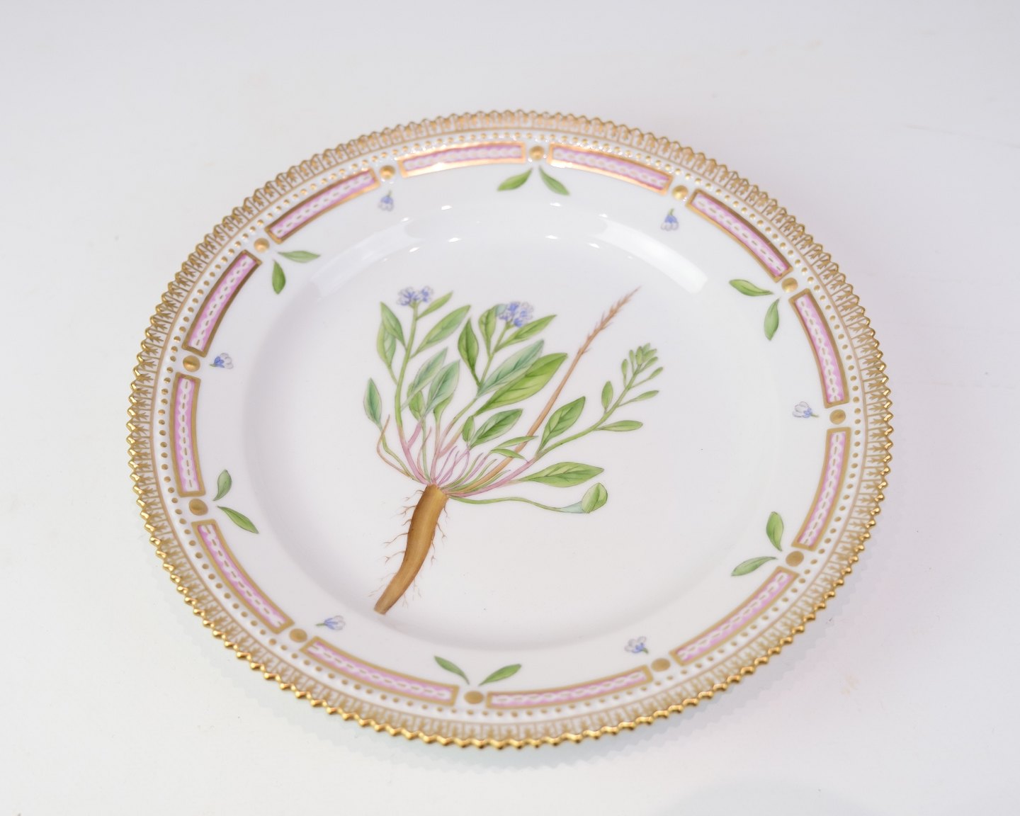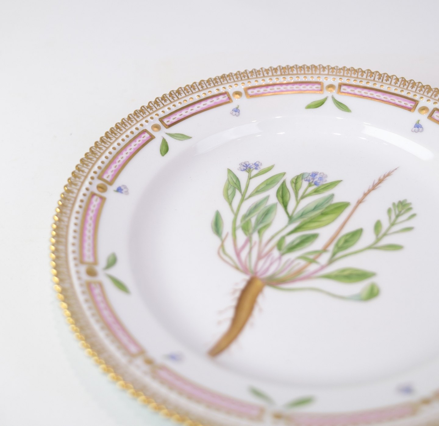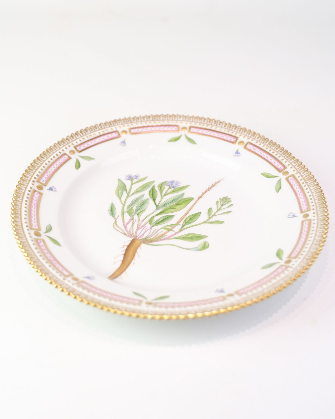 Frokosttallerken fra Flora Danica, dek. nr. 20/3550. Håndmalet og med guldkant. Royal Copenhagen, ca. 1960’erne.