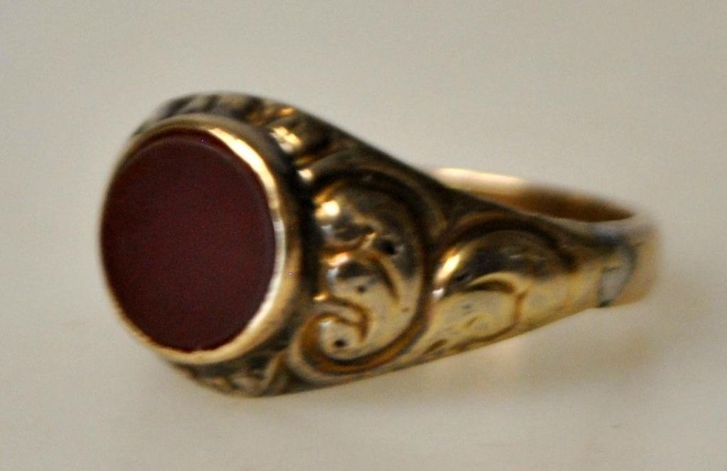 Antique 14 carat red gold ring with carnelian, 19th century.