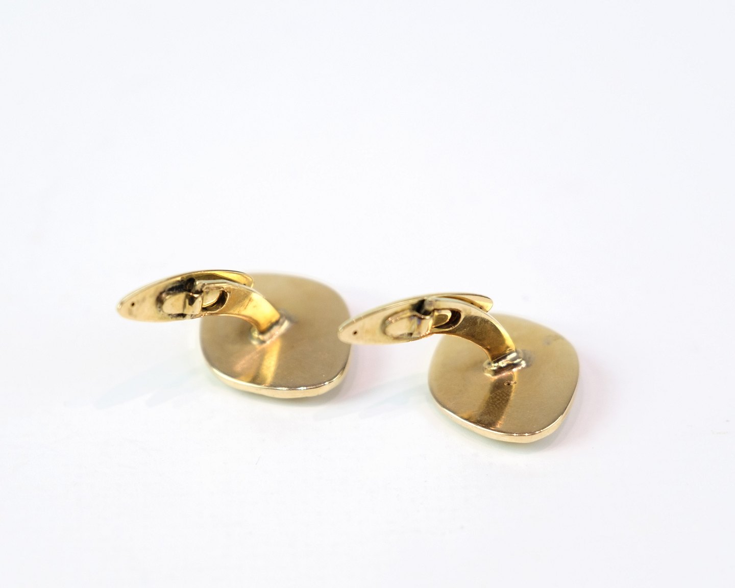 Cufflinks in 14 kt. gold, stamped 585. Grooved design. L: 2 cm, Dia: 1.5 cm. Weight: 6.7 g. Classic men's jewelry.