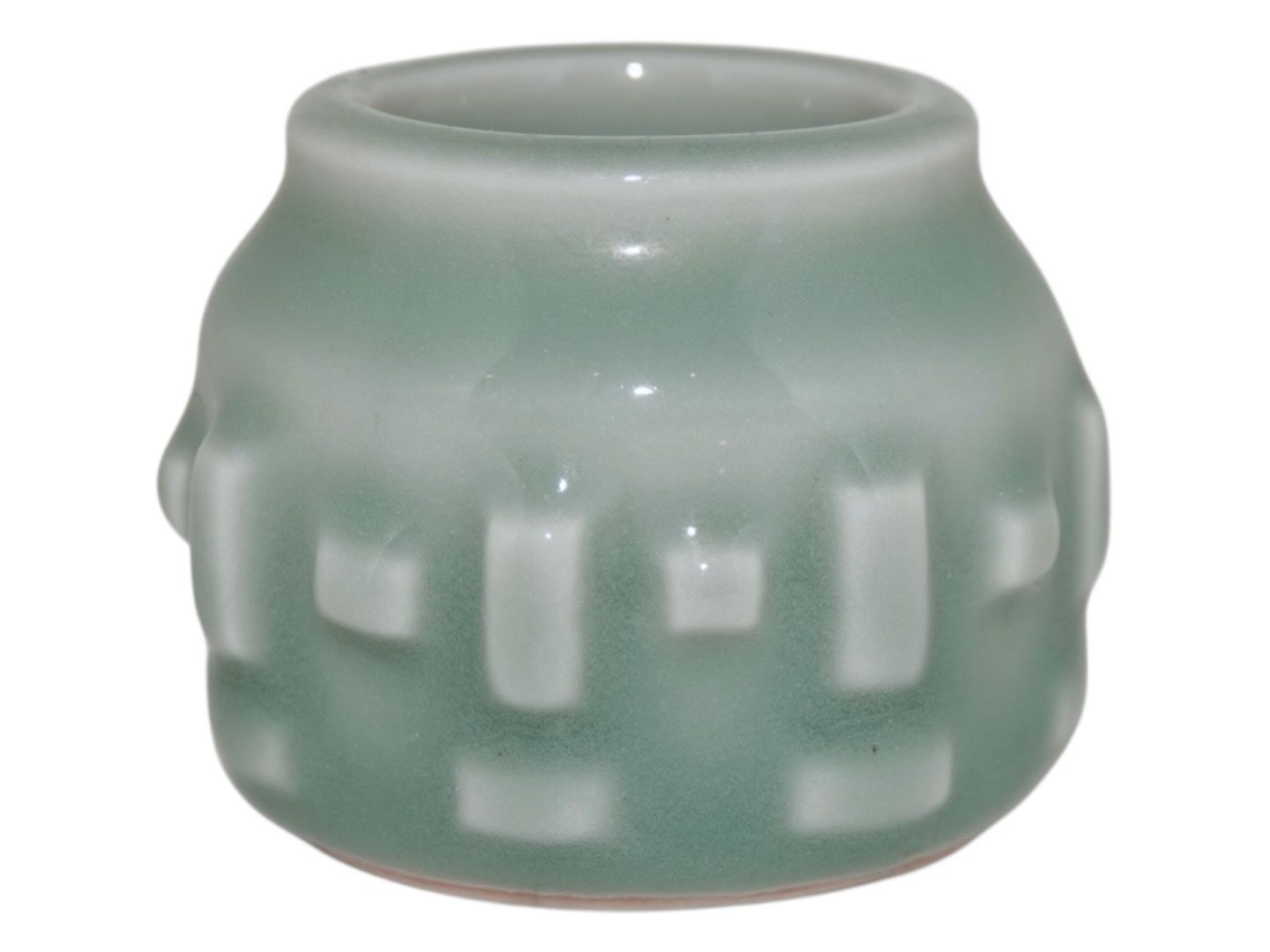 Royal Copenhagen Art Pottery, miniature vase in celadon glaze by artist Jorgen Mogensen.