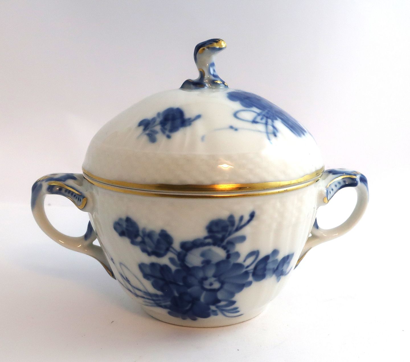 Royal Copenhagen. Blå blomst, svejfet med guld. Sukkerskål. Model 1680. Diameter 10 cm. Højde 11 cm. (1 sortering)