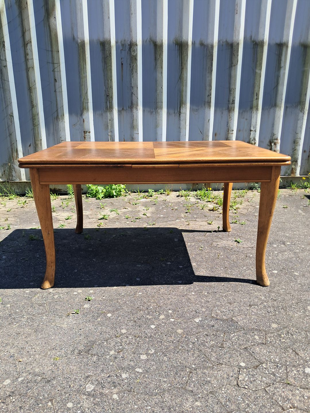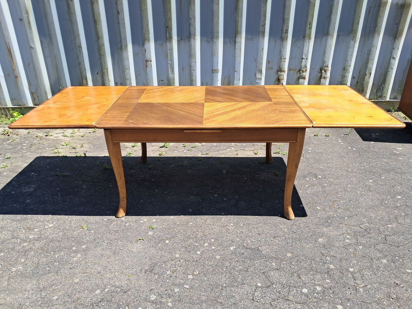 Spisebord i fineret mahogni med hollandsk udtræk, fra 1960erne.