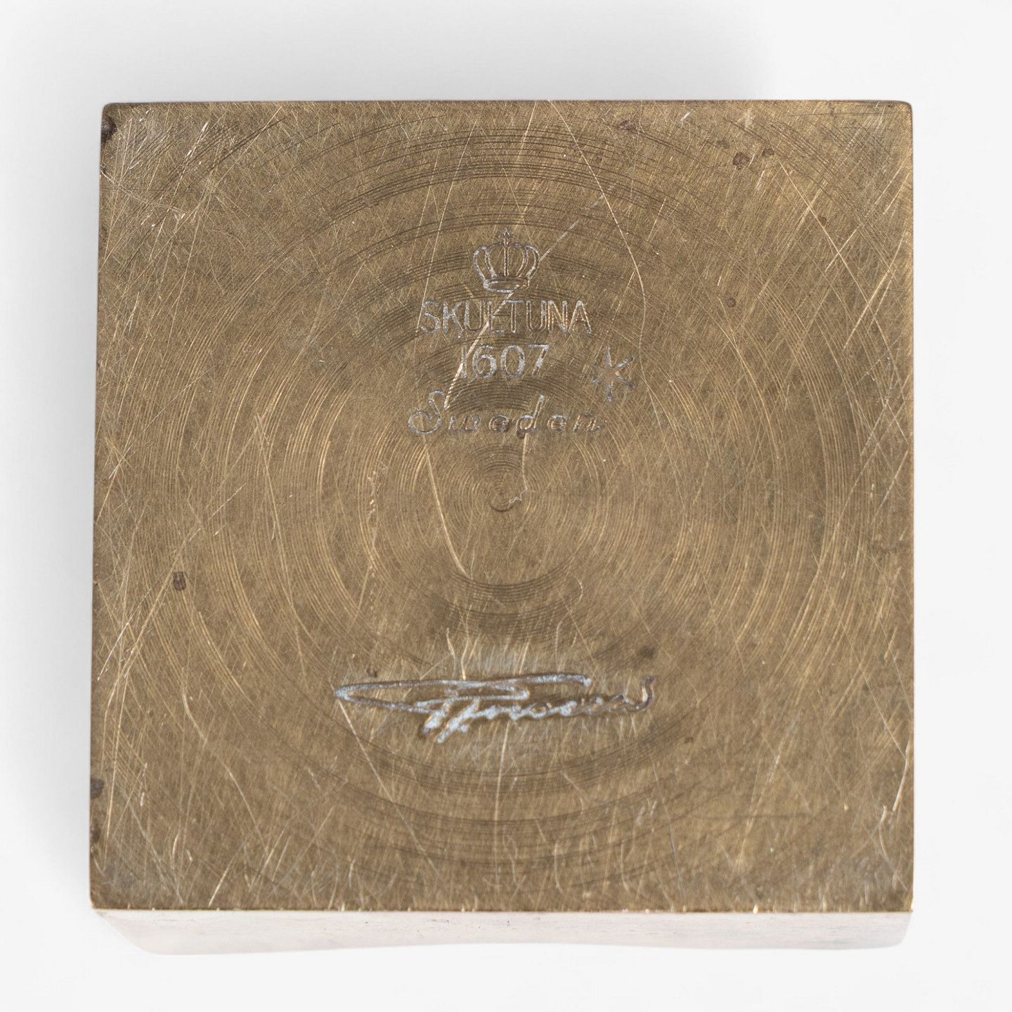 Square candlestick in polished brass. Stamped by manufacturer.