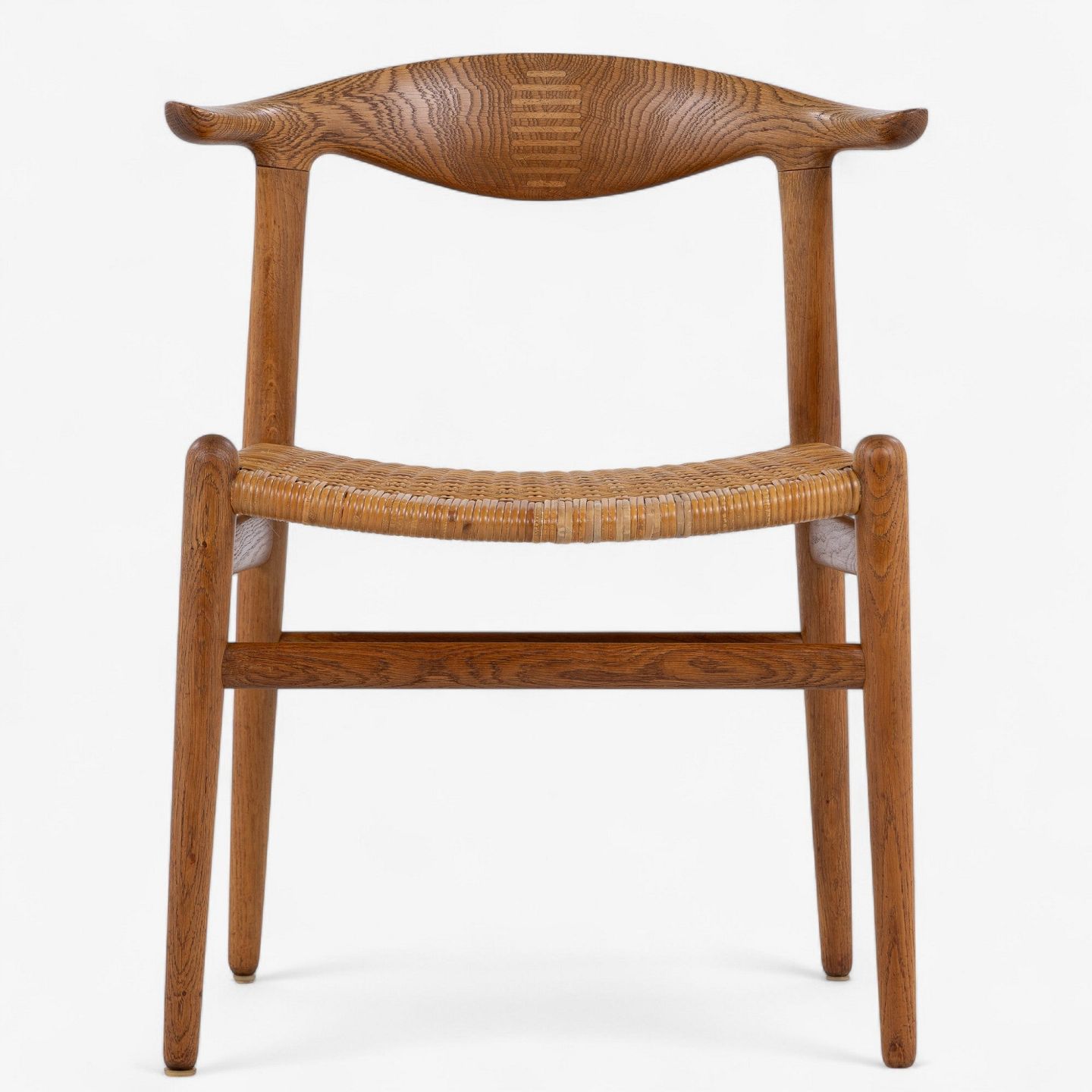 JH 505 - 'Kohorn'-stol i patineret egetræ med sæde i originalt flet.