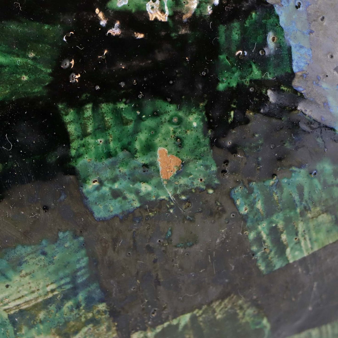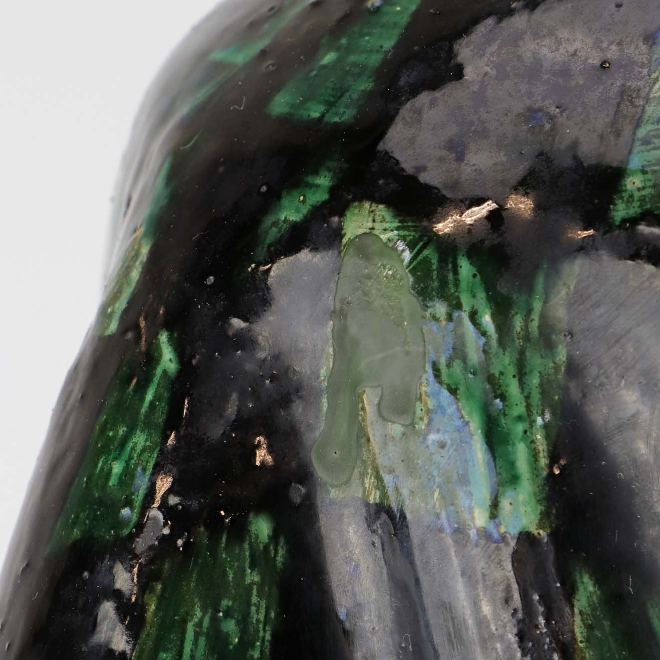 Fremstår med mindre afslag i glasuren samt enkelte områder med matterede reperationer af glasuren.