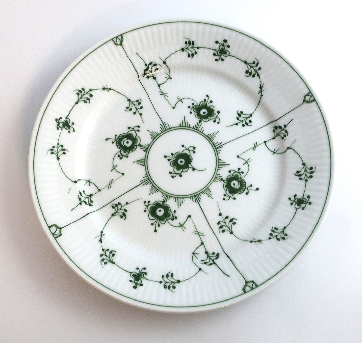 Royal Copenhagen. GRØN musselmalet. Morgenkop med høj hank og kagetallerken. Kop 093 og tallerken 620 (19 cm). (2 sortering)