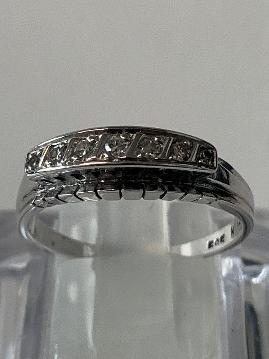 Diamant ring i 14 karat hvidguld med blank overflade og 7 brillantslebne diamanter
