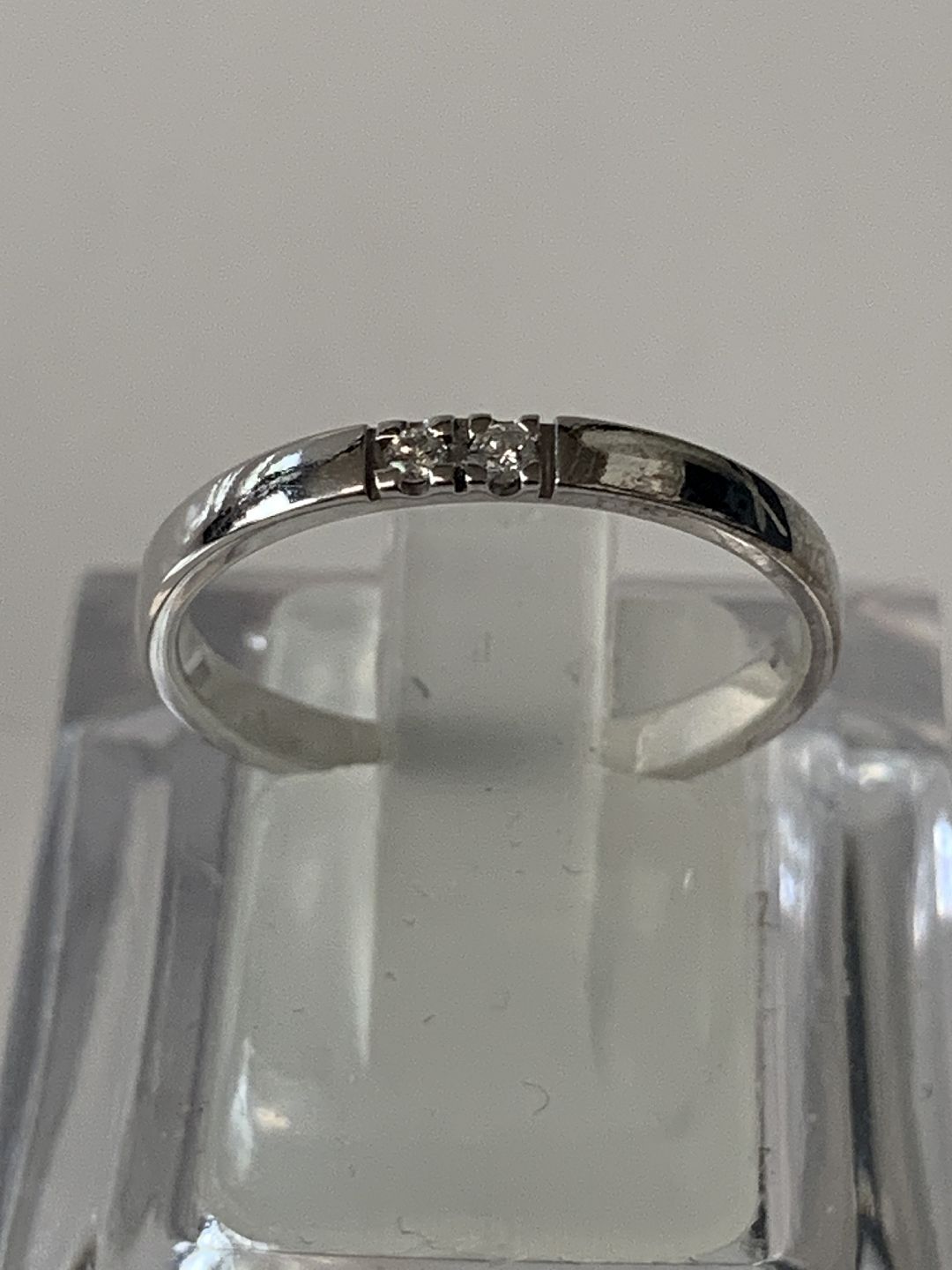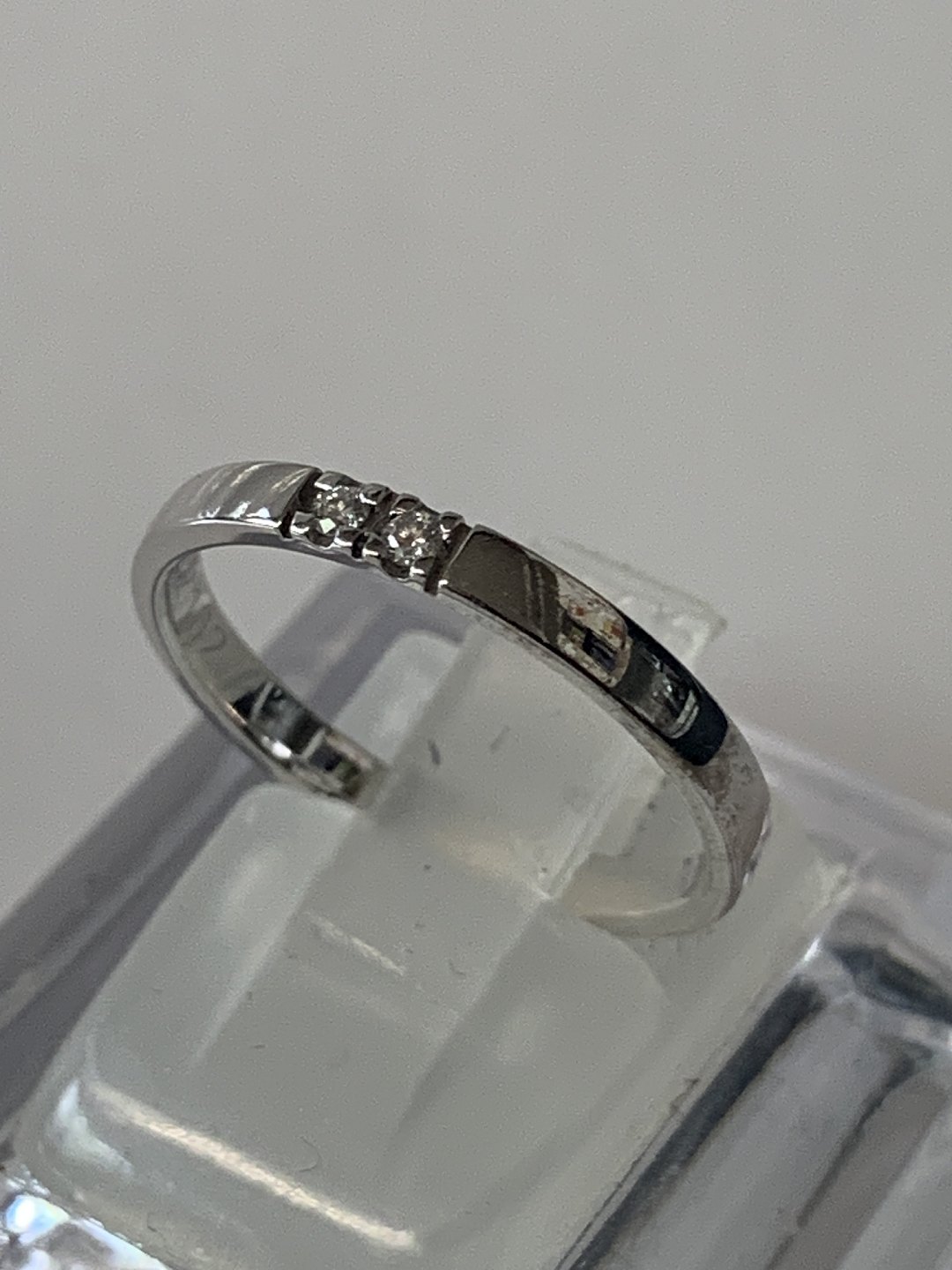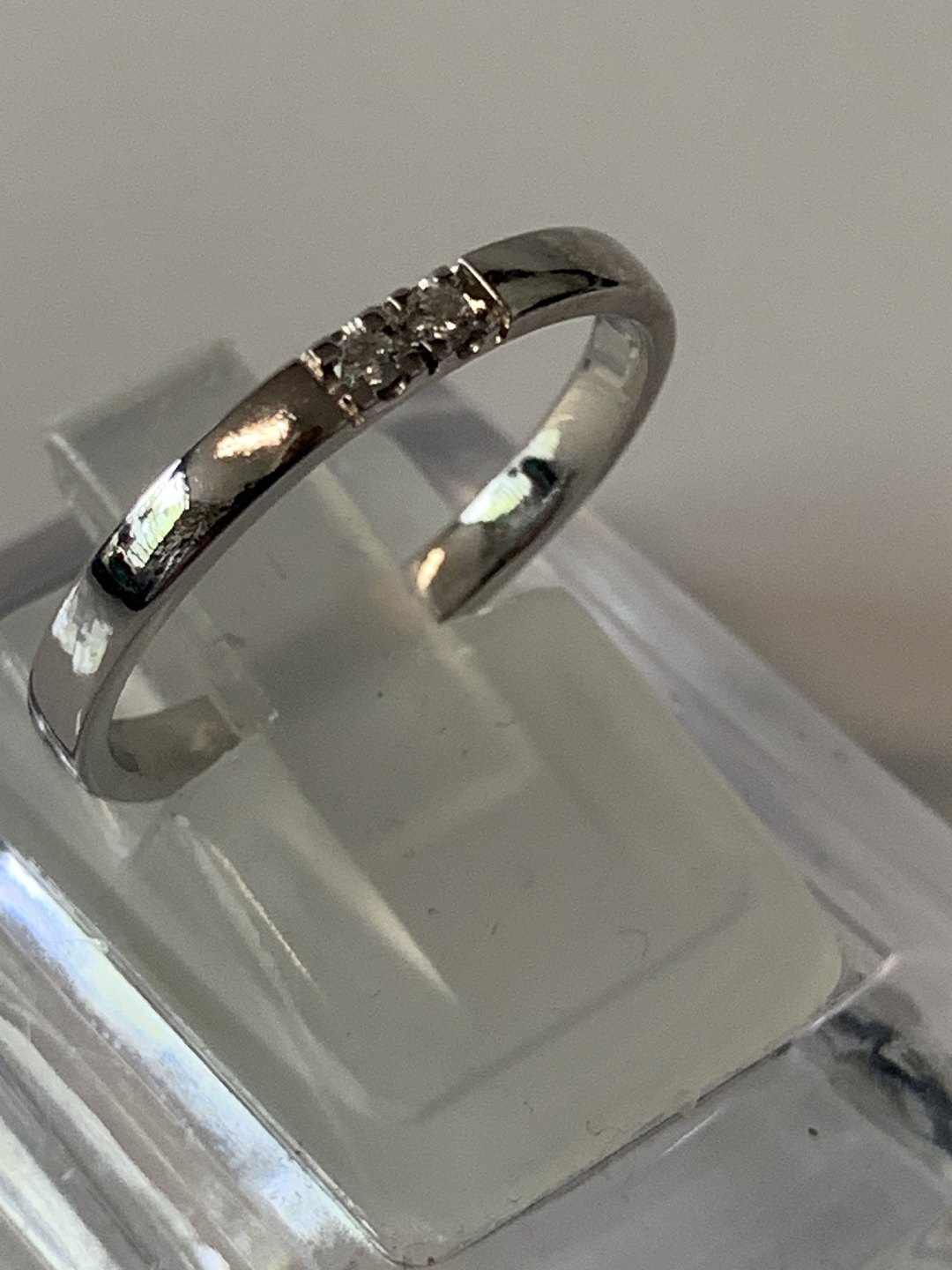 Alliancering i 14 karat hvidguld med 2 diamanter