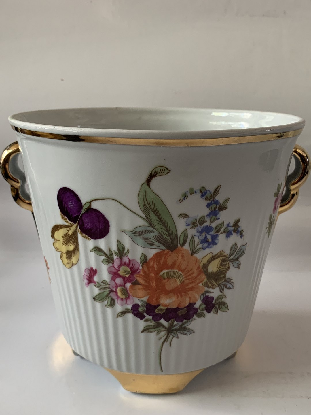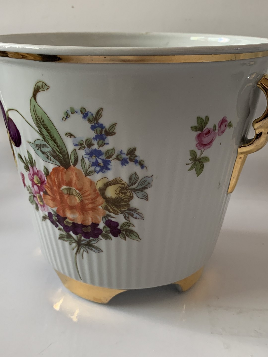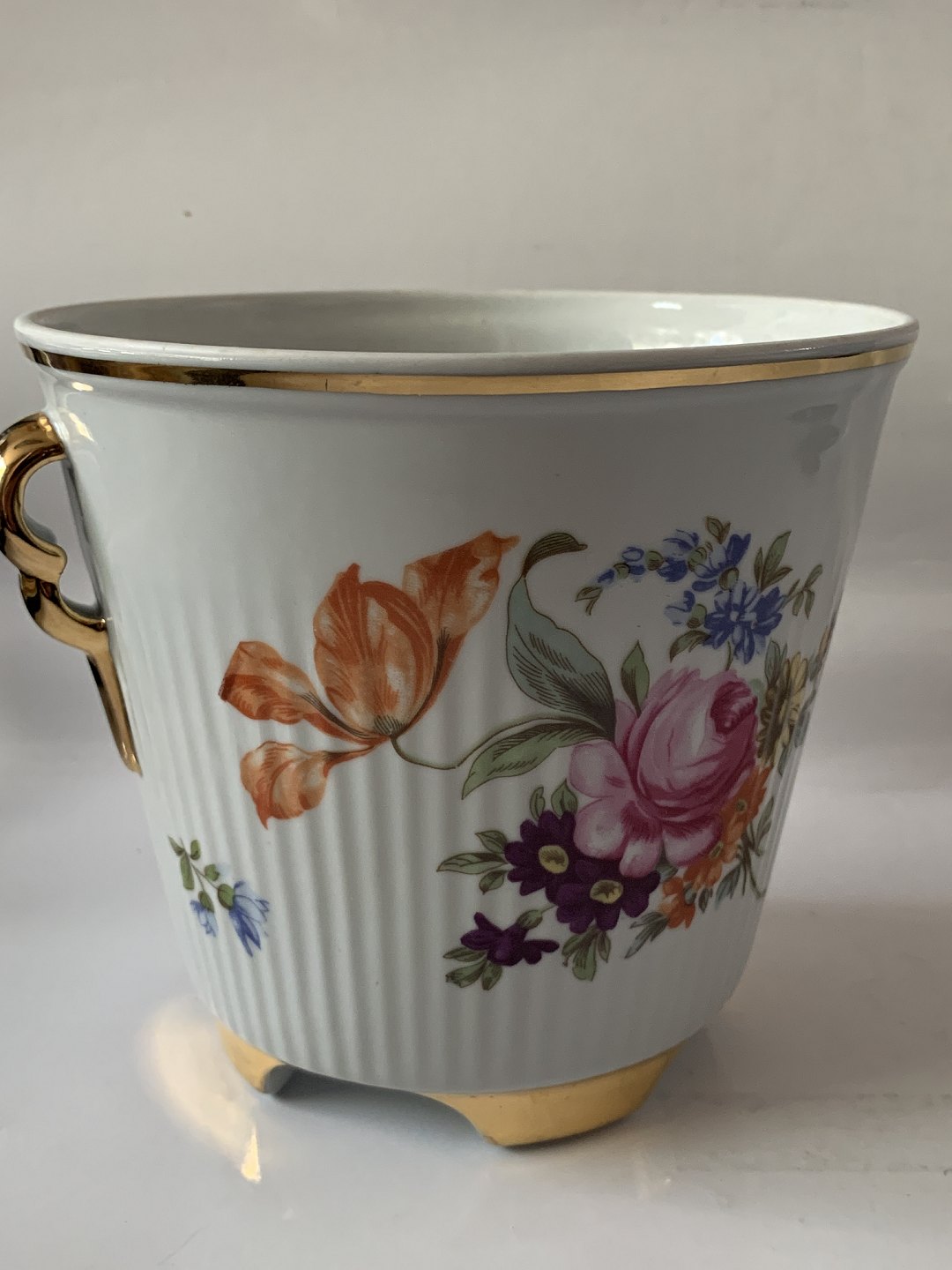 Urtepotteskjuler med blomstermotiv / 4 fødder.