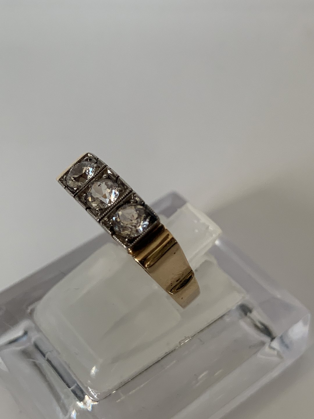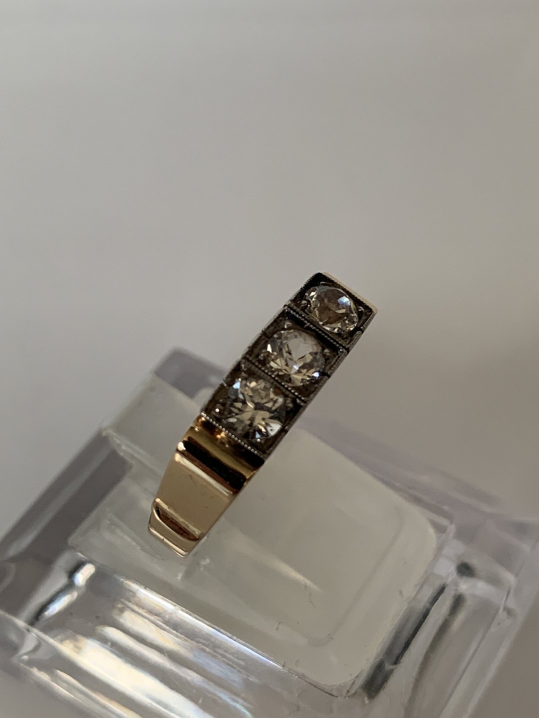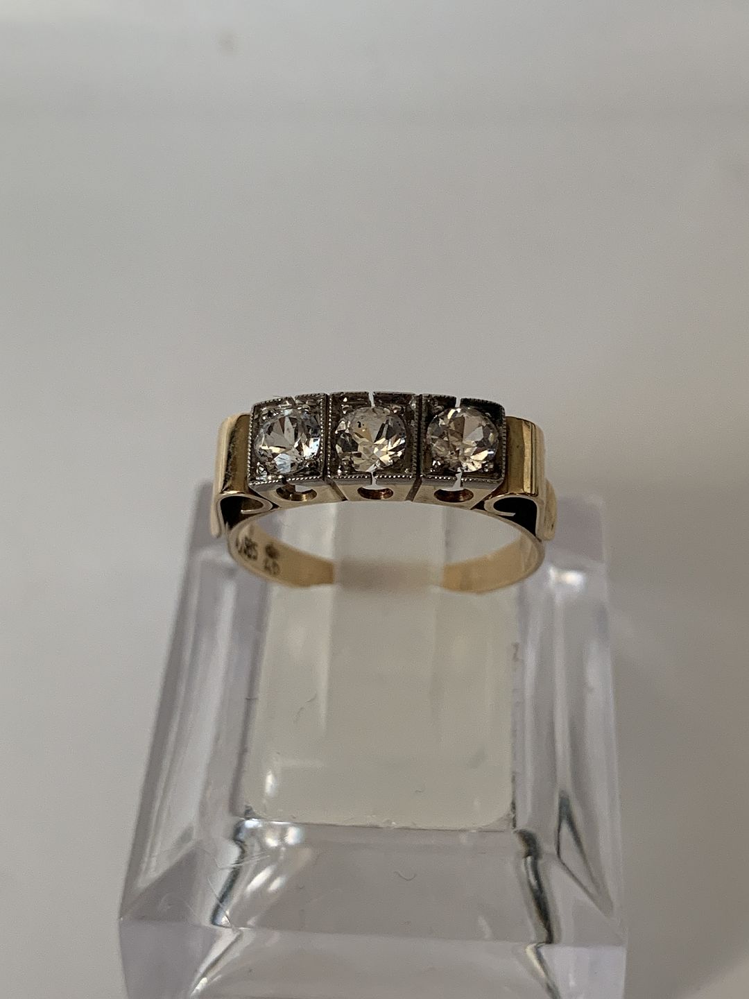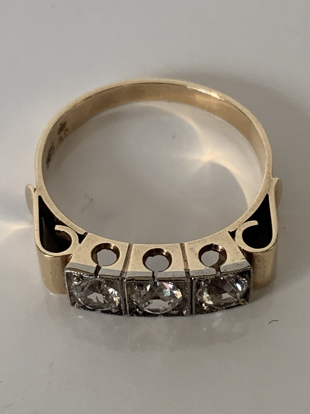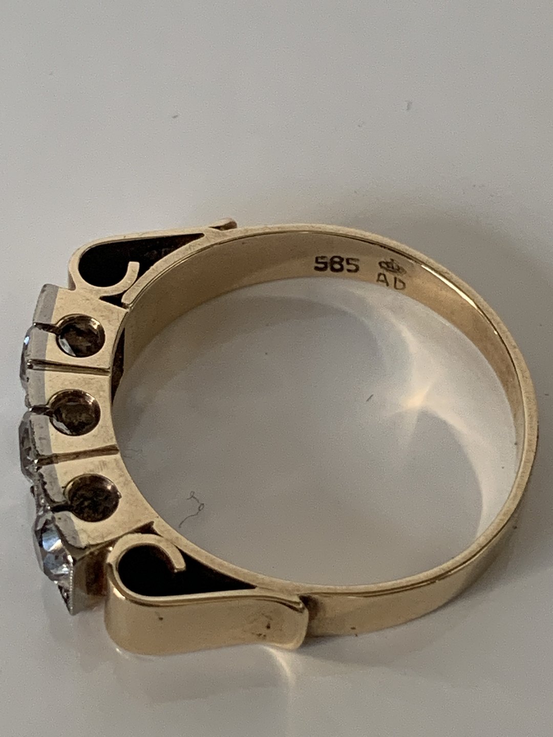 14 karat rød/hvidguld, Dame ring med 3 klare sten.