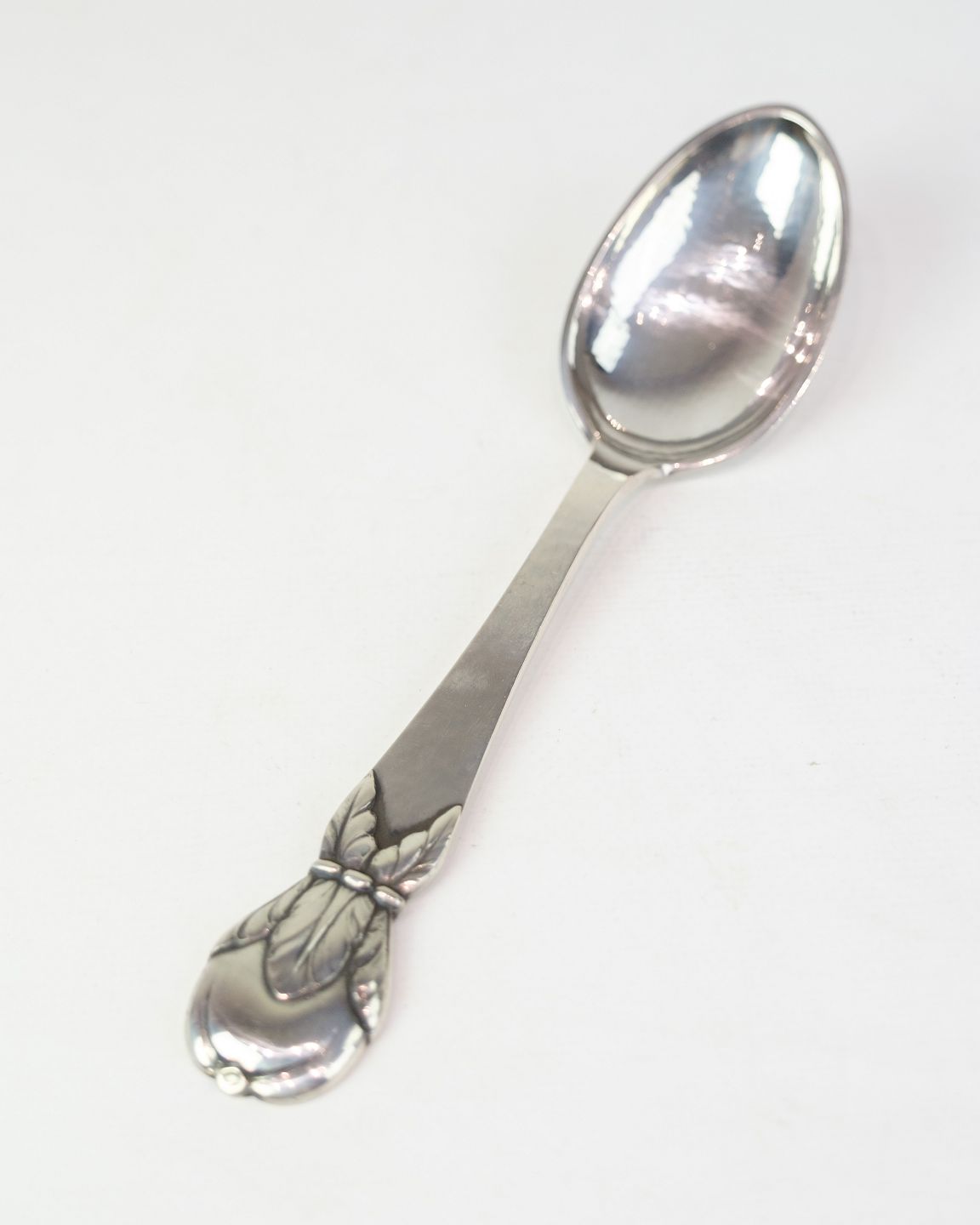 Spiseske fra A.C. Illum, København. Tretårnet sølv stemplet 825, ca. midt 1900-tallet. Længde 20 cm. Illum var kendt for høj kvalitet.