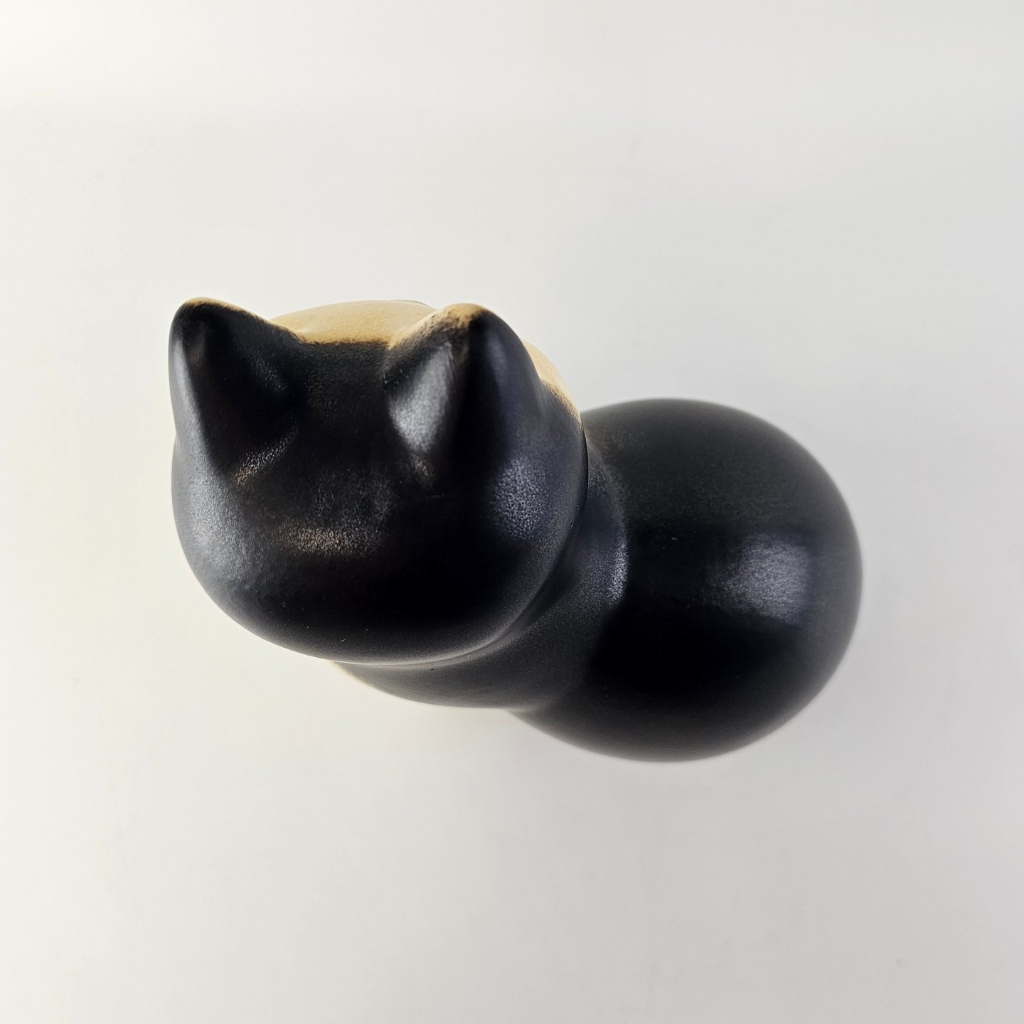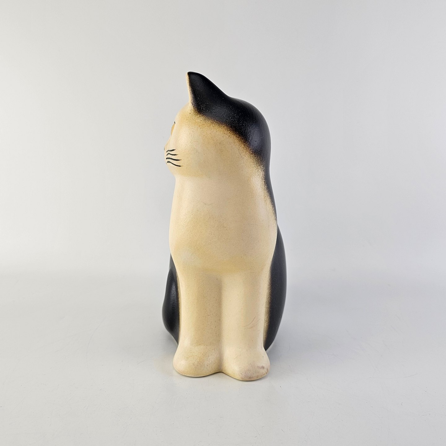 Måns figur i glaseret stentøj med motiv af en kat