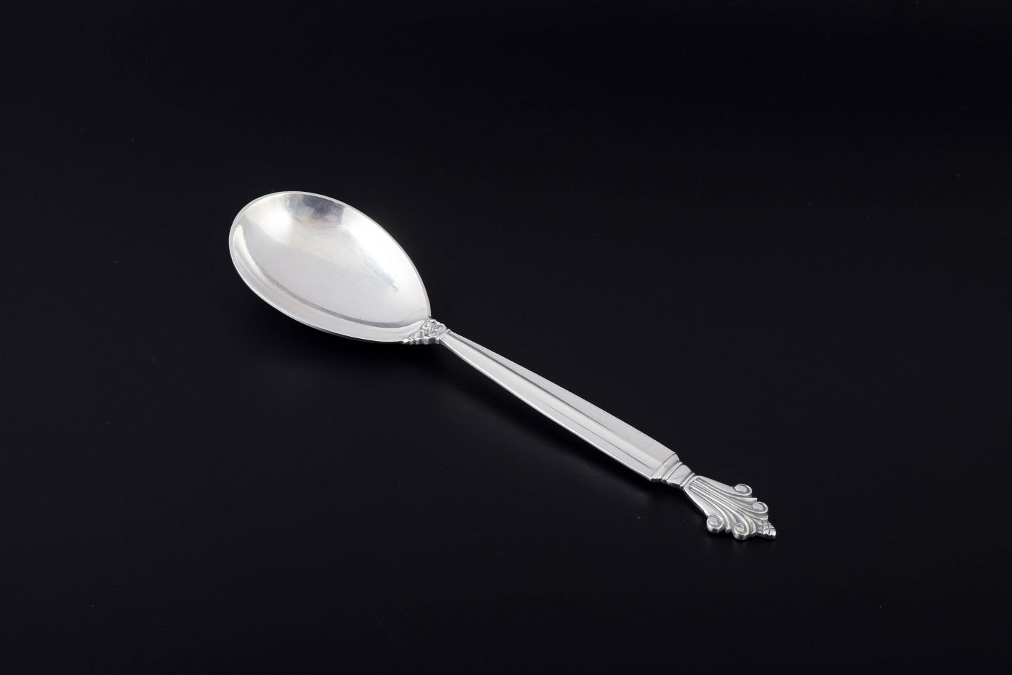 An elegant jam spoon by Georg Jensen in the refined “Acanthus” pattern, introduced in 1925 and recognized for its timeless Scandinavian design.