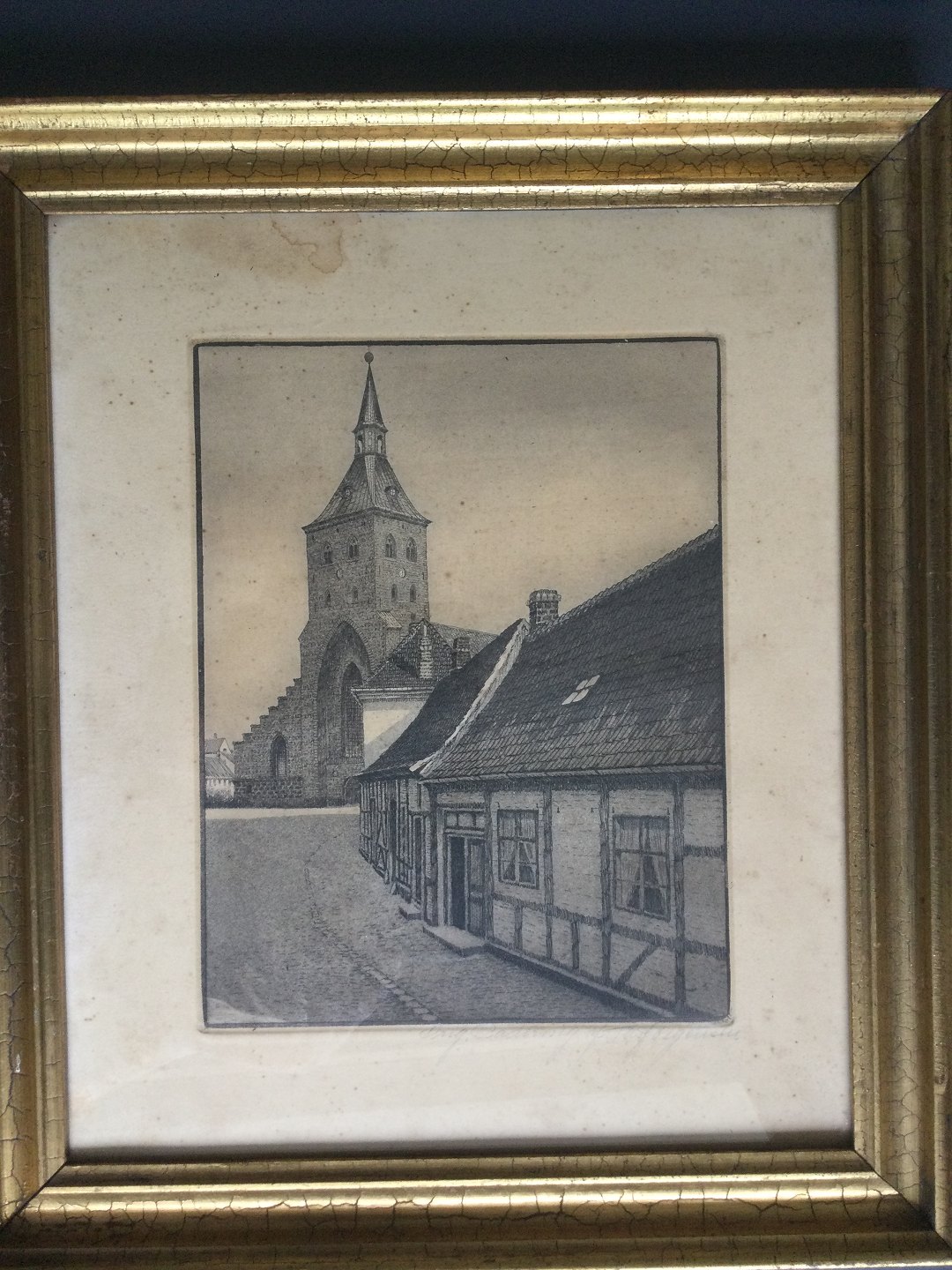 Radering af Thorvald Jørgensen - Odense Domkirke - Skt Knuds Kirke..