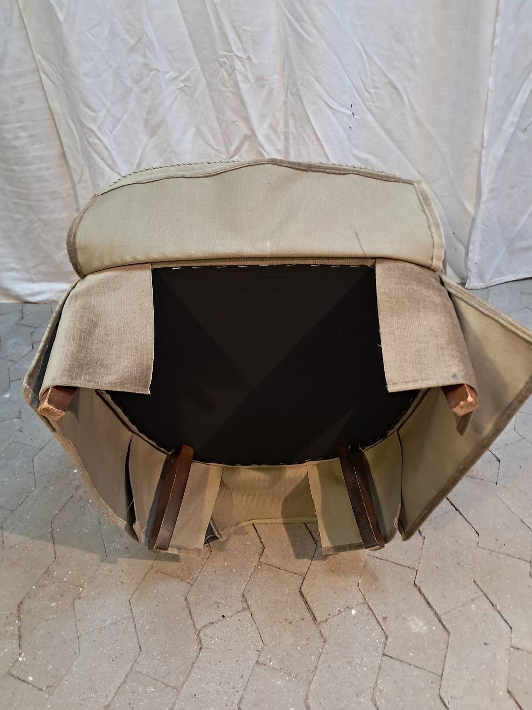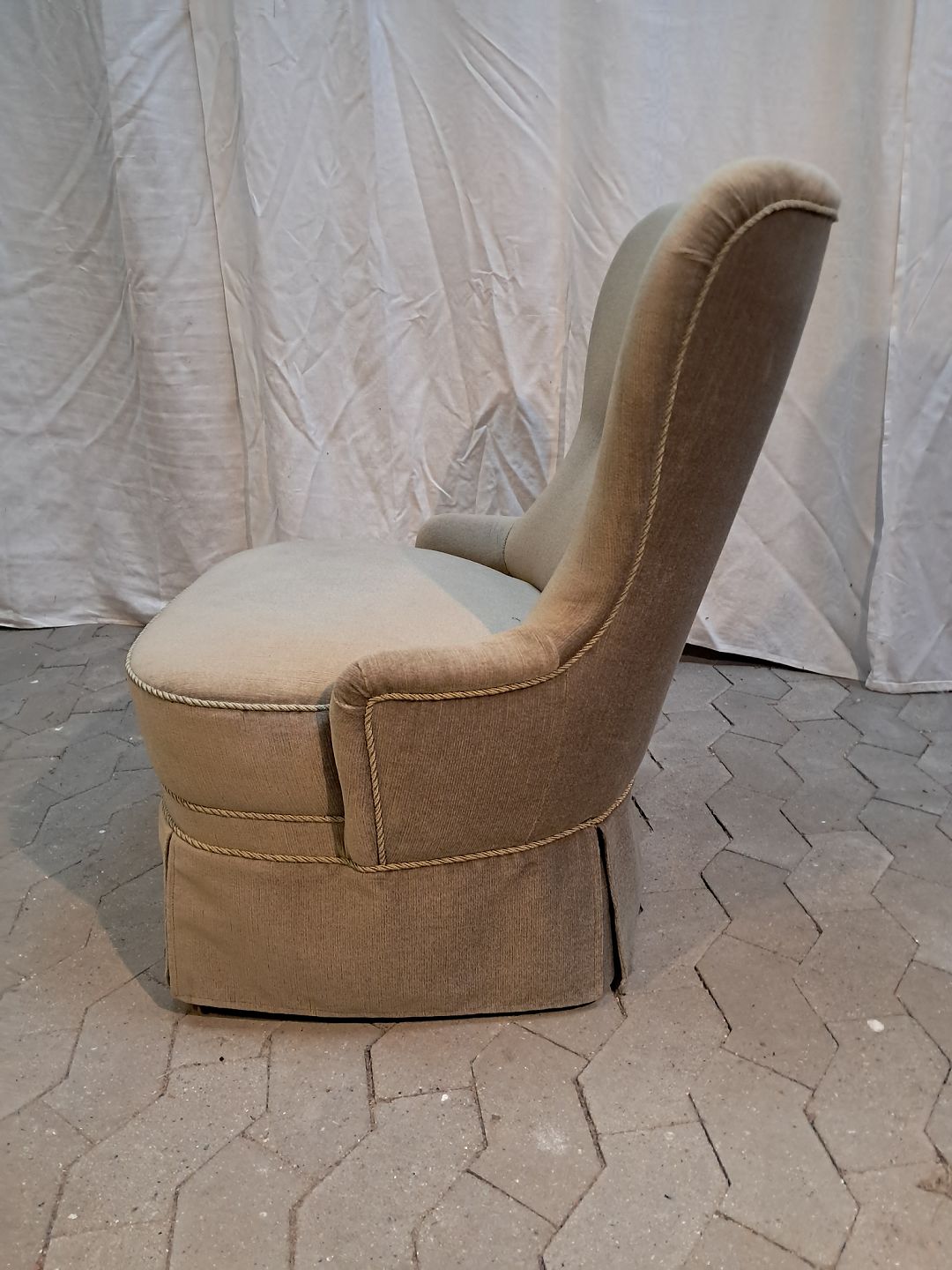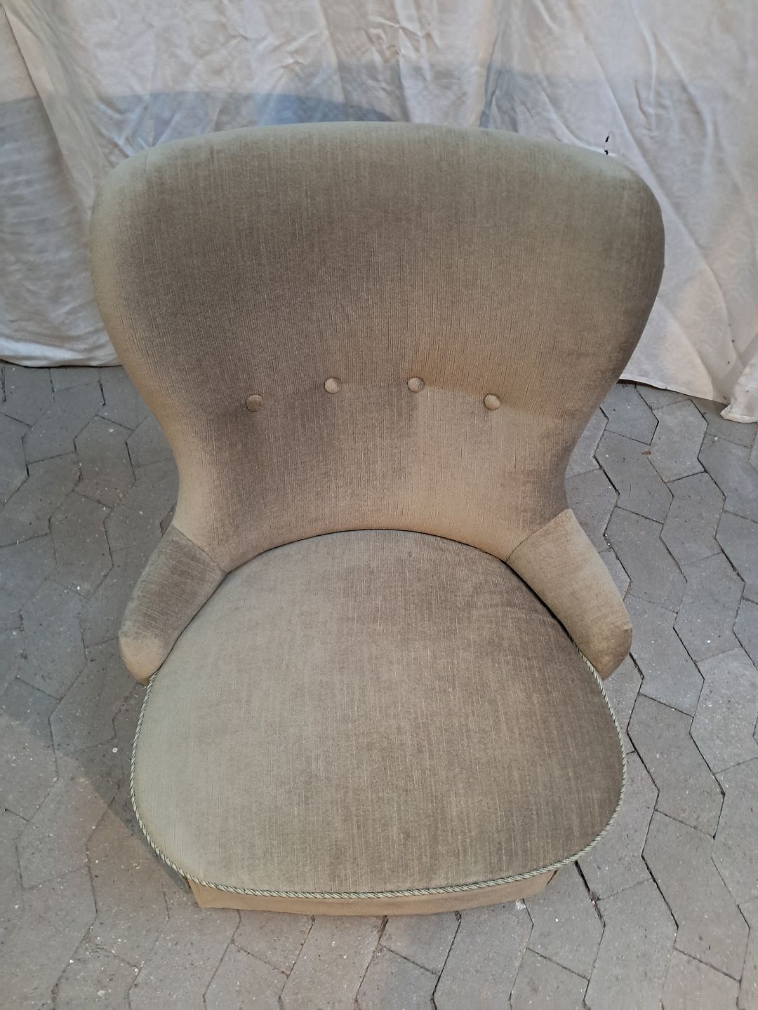 Lænestol i lysegrøn velour, fra 1950erne.