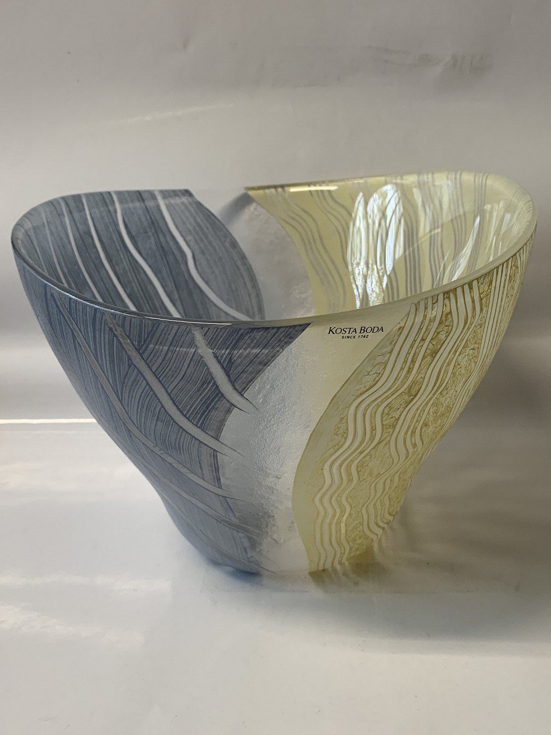 Stor glasskål i flotte nuancer.