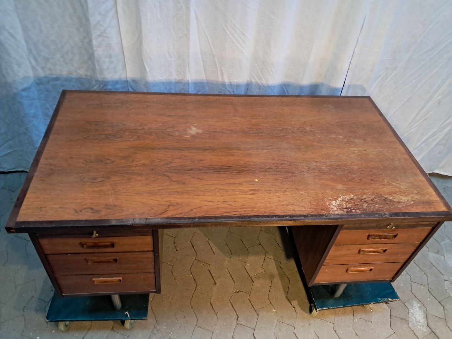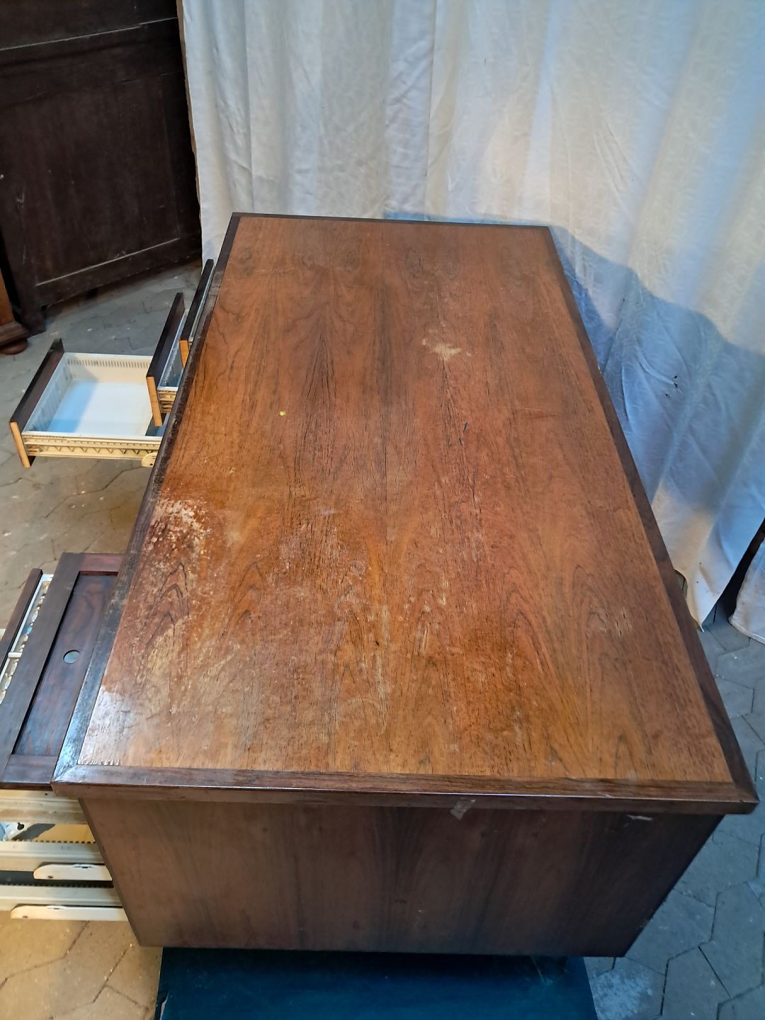 Skrivebord i fineret palisander, fra 1980erne.