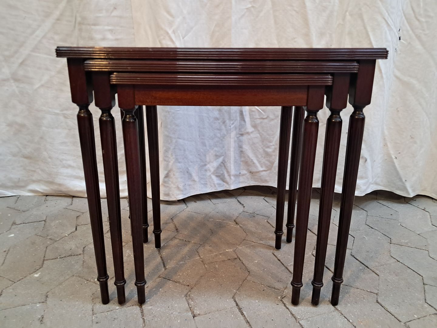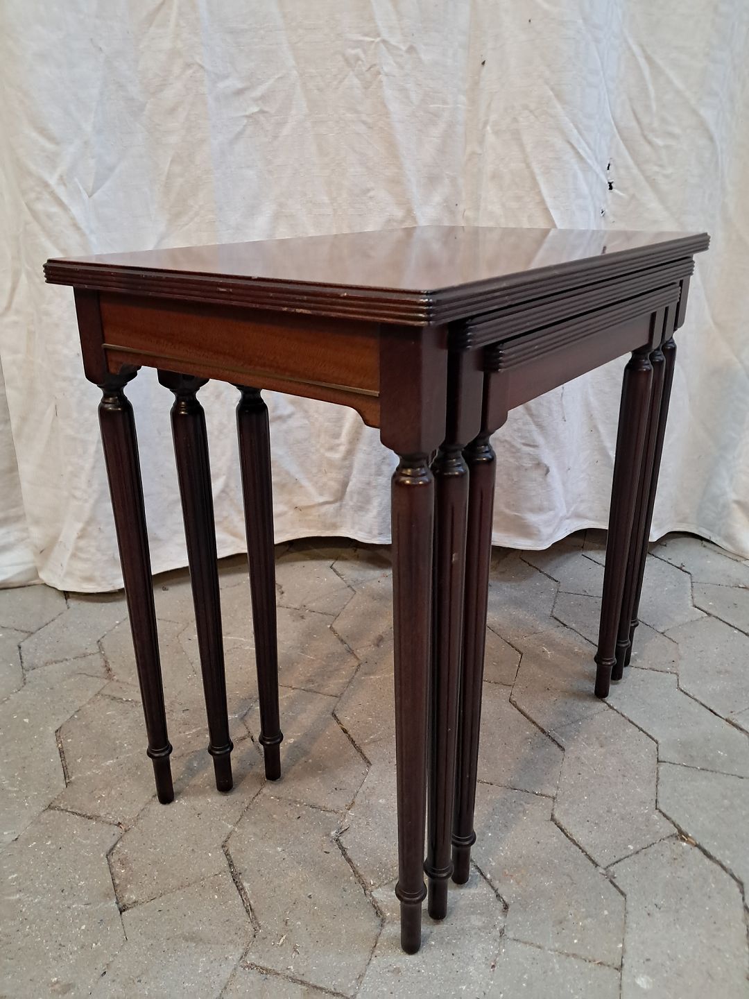 3 Indskudsborde i fineret mahogni, fra 1980erne.