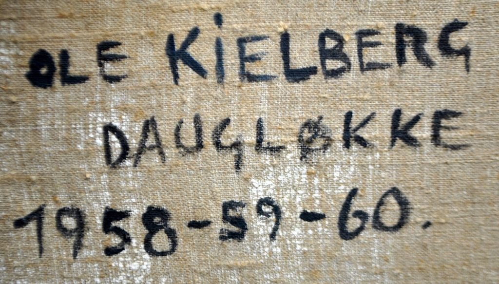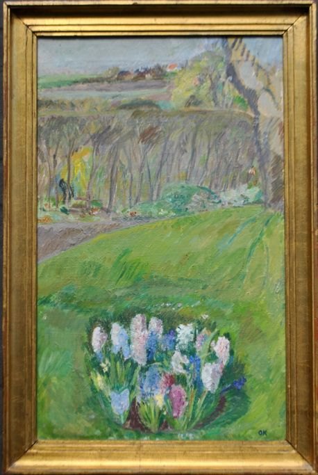 Kielberg, Ole (1911 - 1985) Denmark: Hyacinthbed, 1958-1960. Oil on canvas. Signed: OK and on the back: Ole Kielberg Daugløkke 1958-59-60. H: 61 cm. W: 38 cm.
