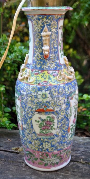 Kinesisk vase - omgjort til lampe, 19. årh. Famille rose.
