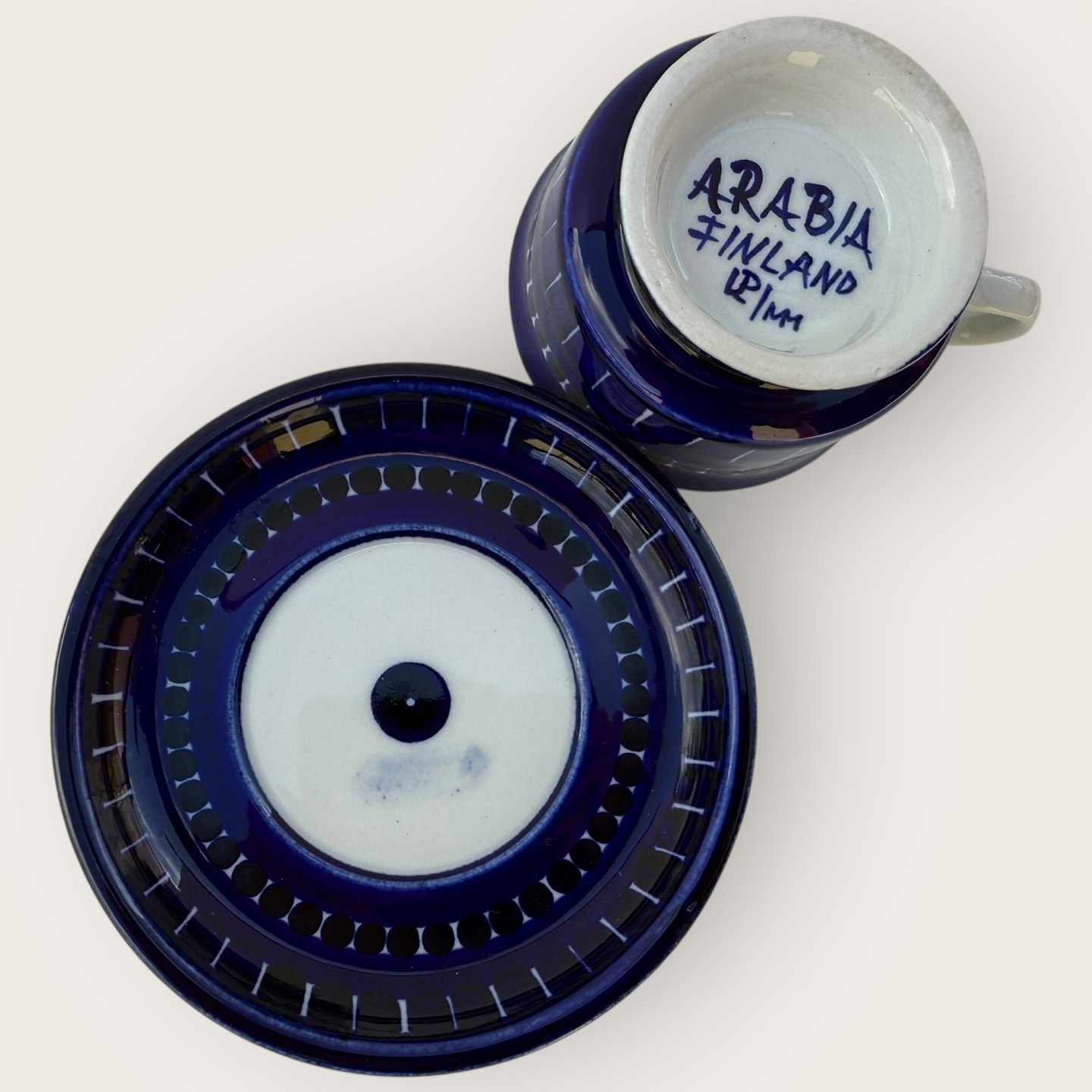 Arabia, Valencia, Ulla Procopé, Espresso cup, Cup height 5cm, diameter 7.5cm, slight marks under the bottom on both and some black spots inside one cup.