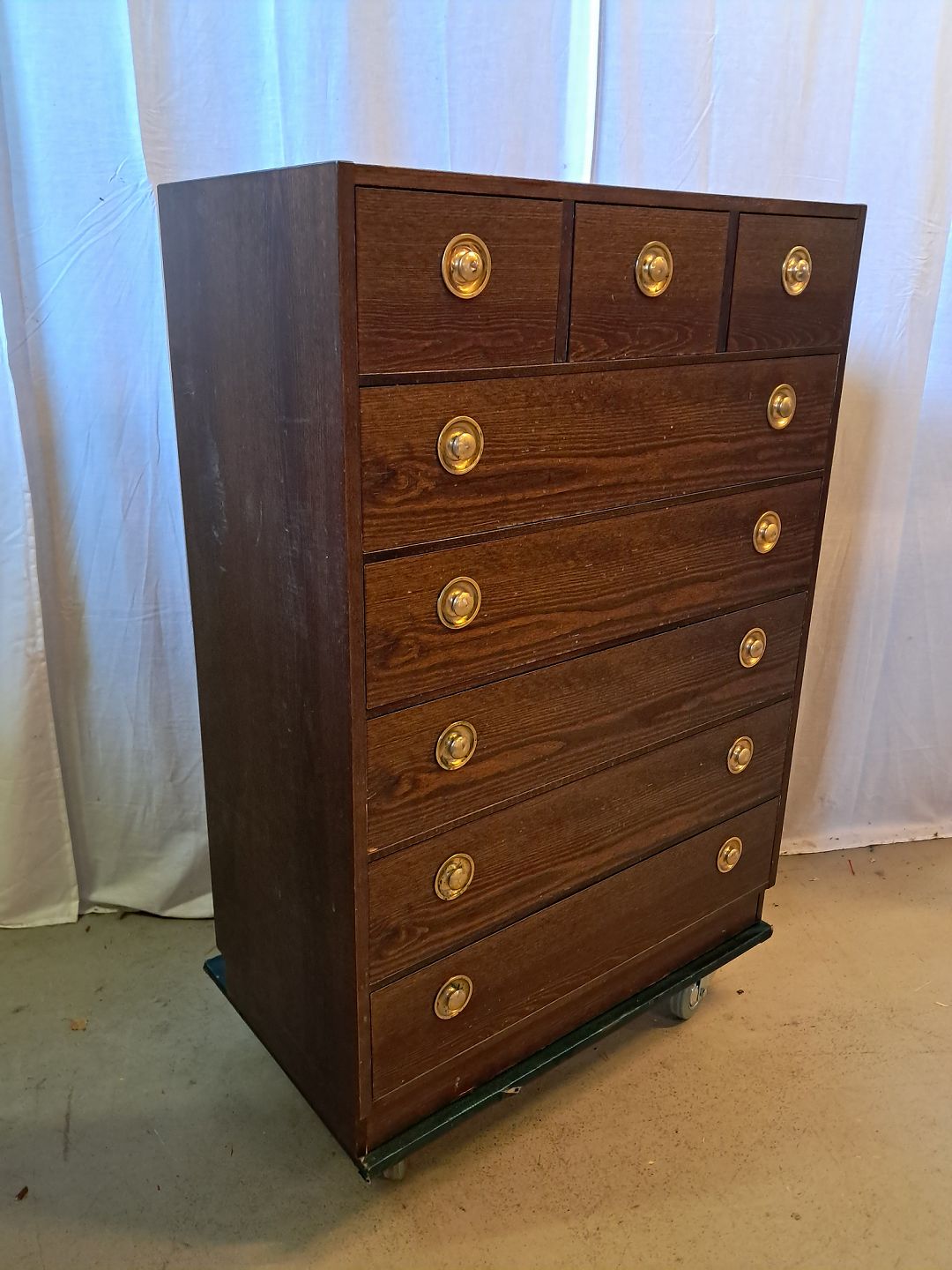 Kommode i fineret og bejdset fyrretræ, fra 1980erne.