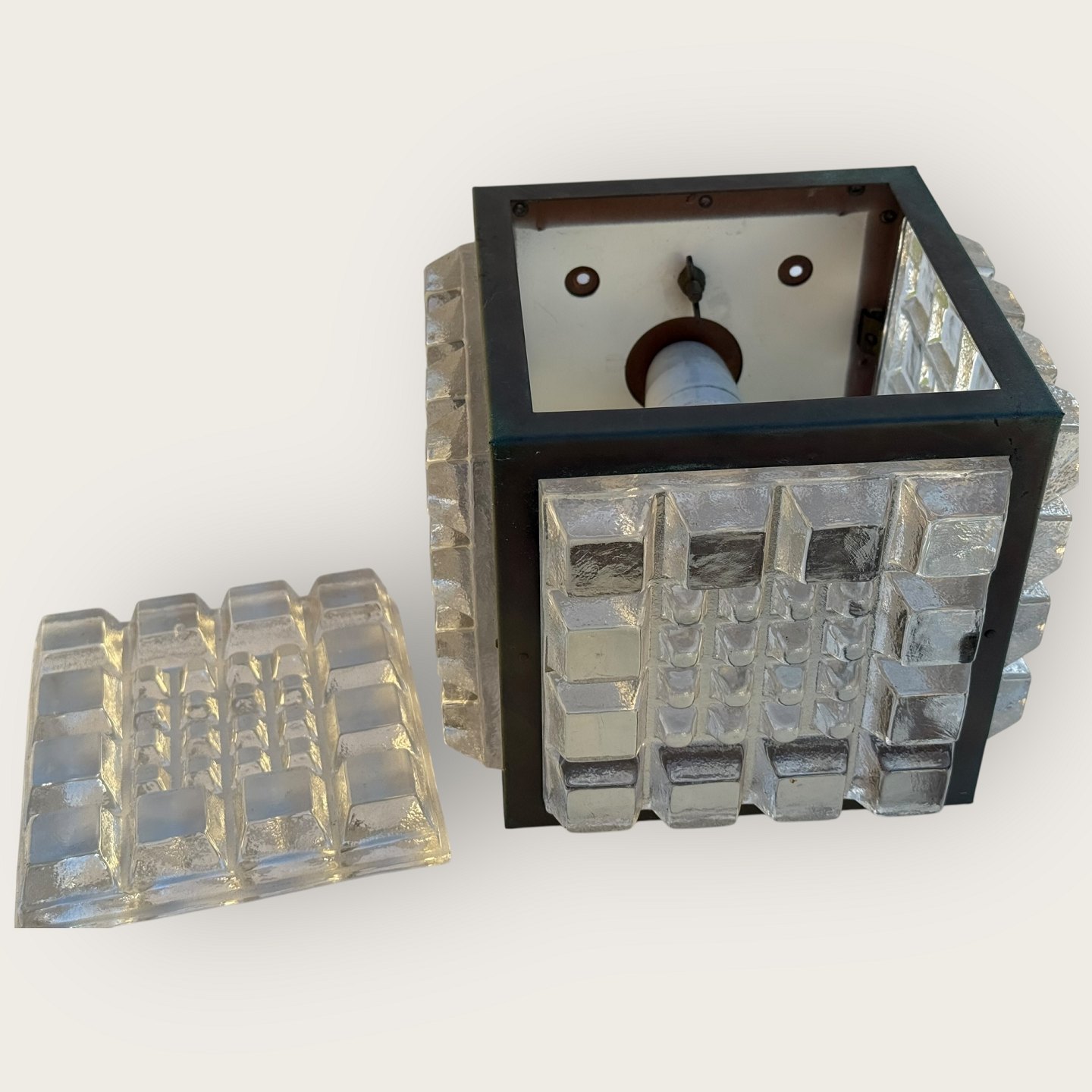 Falkenbergs Belysning, Sverige, Udendørs lampe med tykke glassider, fra 1970'erne, Mål 22x22x22cm, *fin stand*