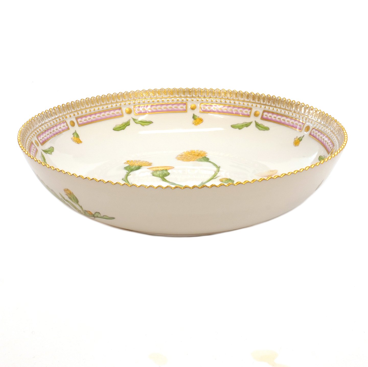 Royal Copenhagen Flora Danica rund skål #3505. "Leontodon hirtum Müll". År 1979-83. H: 6cm. D: 25cm |