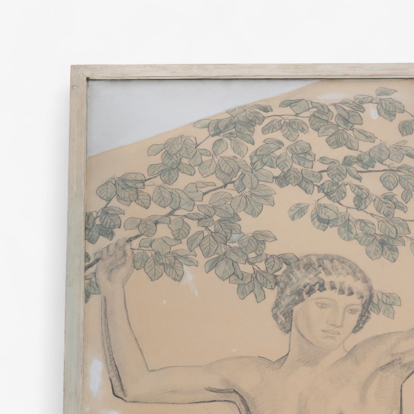 Large pencil sketch and light coloring in painted wooden frame from 1910. Signed by the artist.