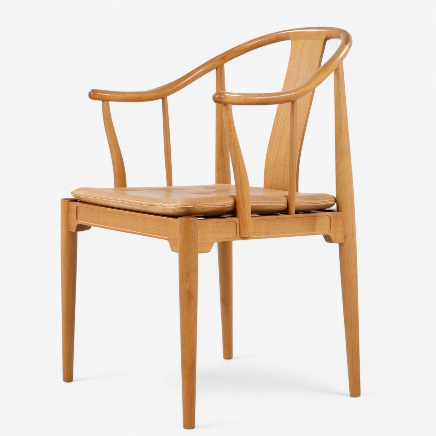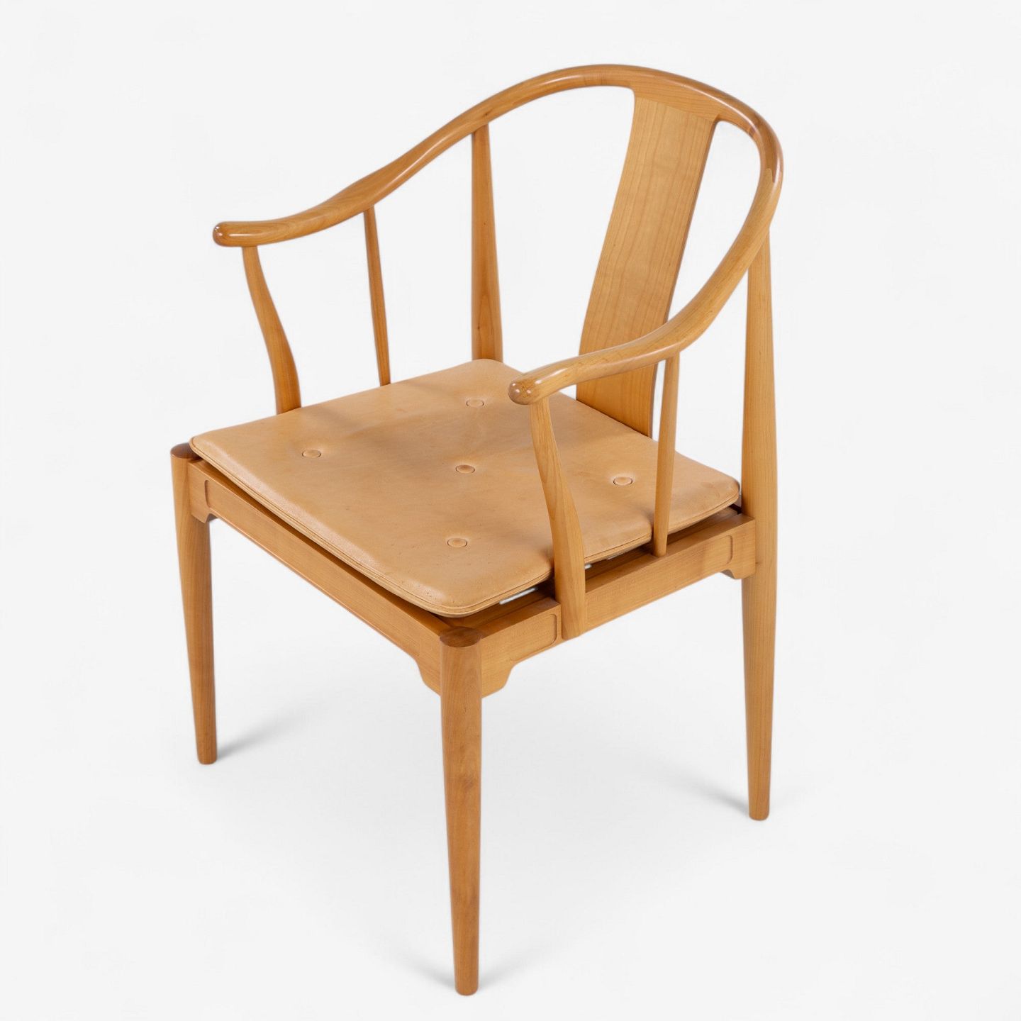 FH 4283 - Kinastol i kirsebær med hynde i patineret naturlæder. Mærket fra producent.