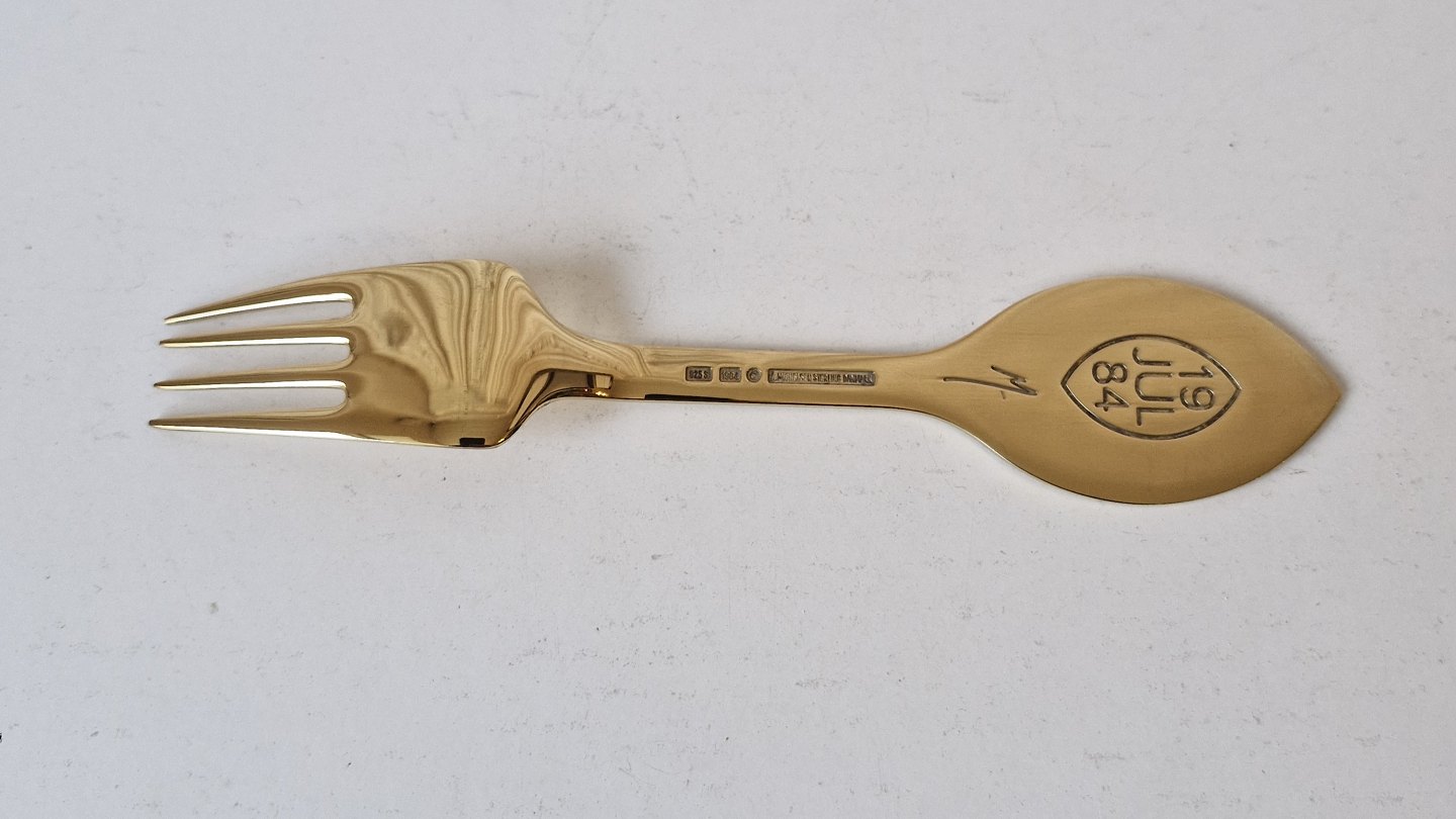 A.Michelsen Christmas fork in gold-plated sterling silver and enamel from 1984