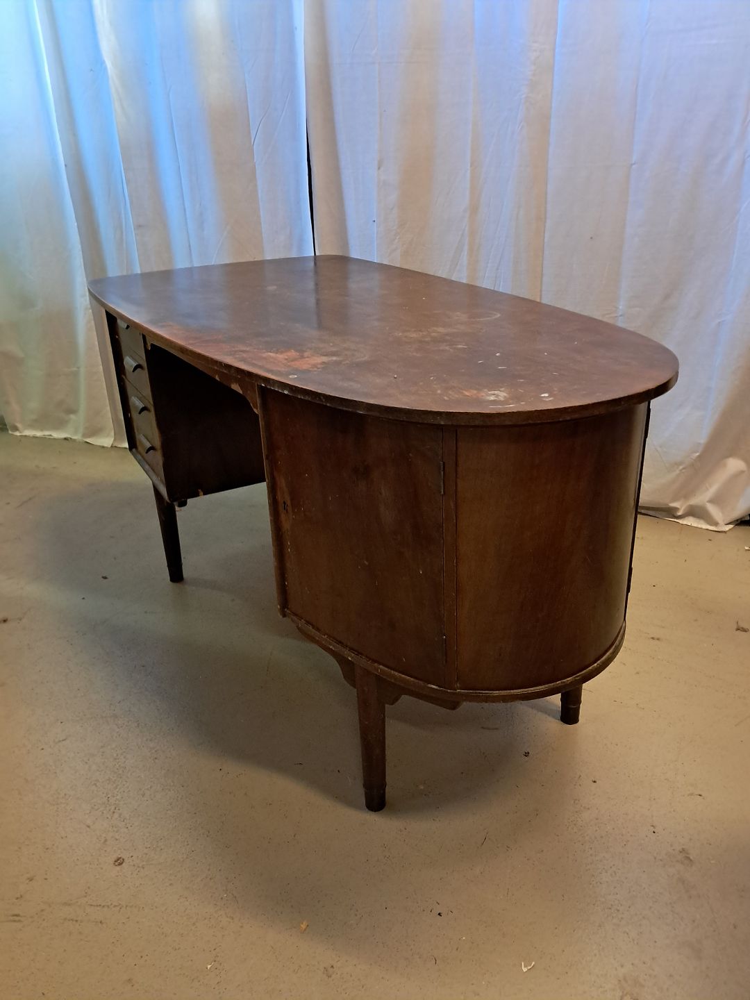 Skrivebord i fineret nødetræ, fra 1960erne.