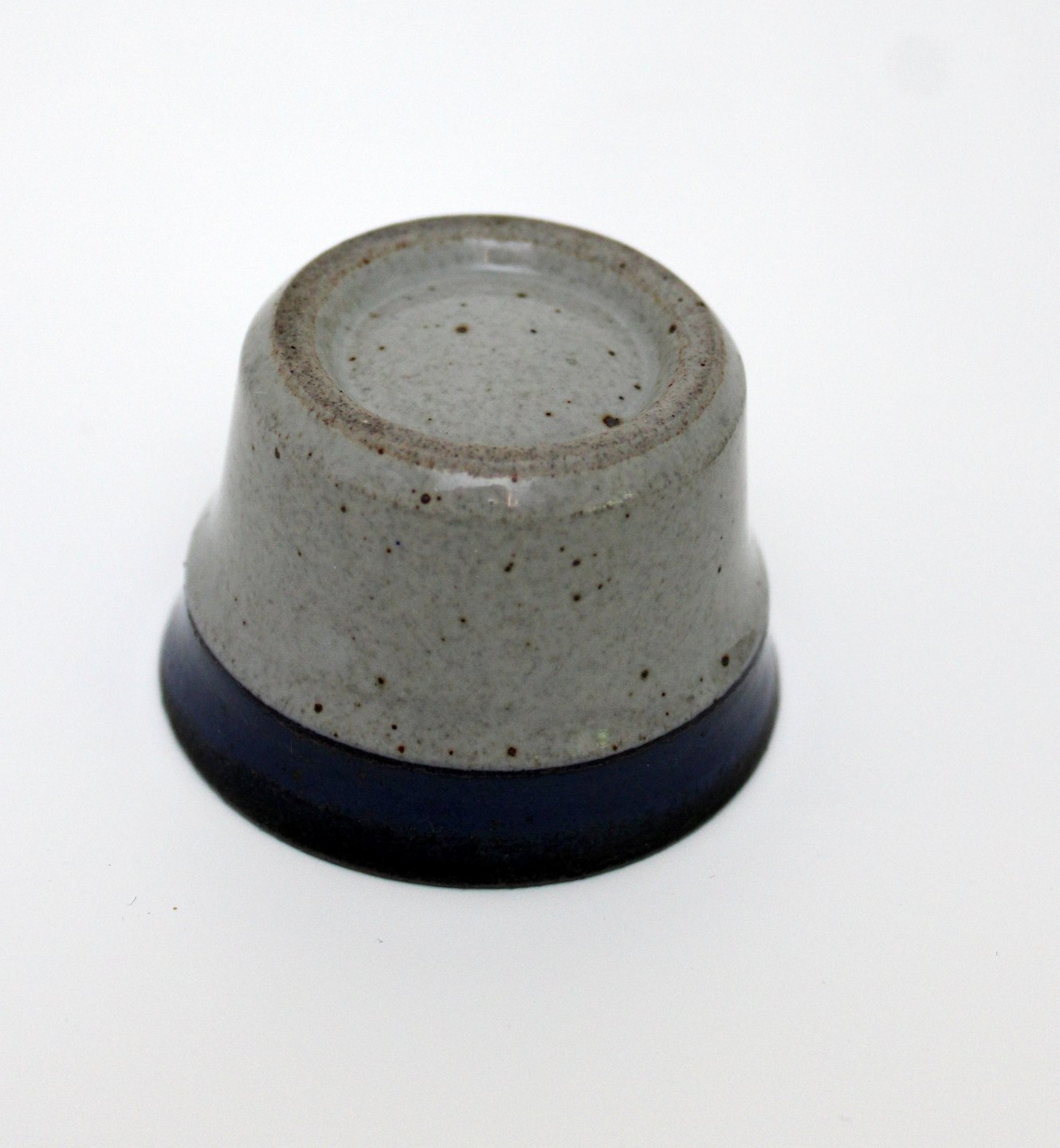 Knabstrup, Christine stentøjsstel grå glasur med blå kant. Designet af den tyske kunstner Christine Konschak, som var tilknyttet Knabstrup i perioden 1967-1970.