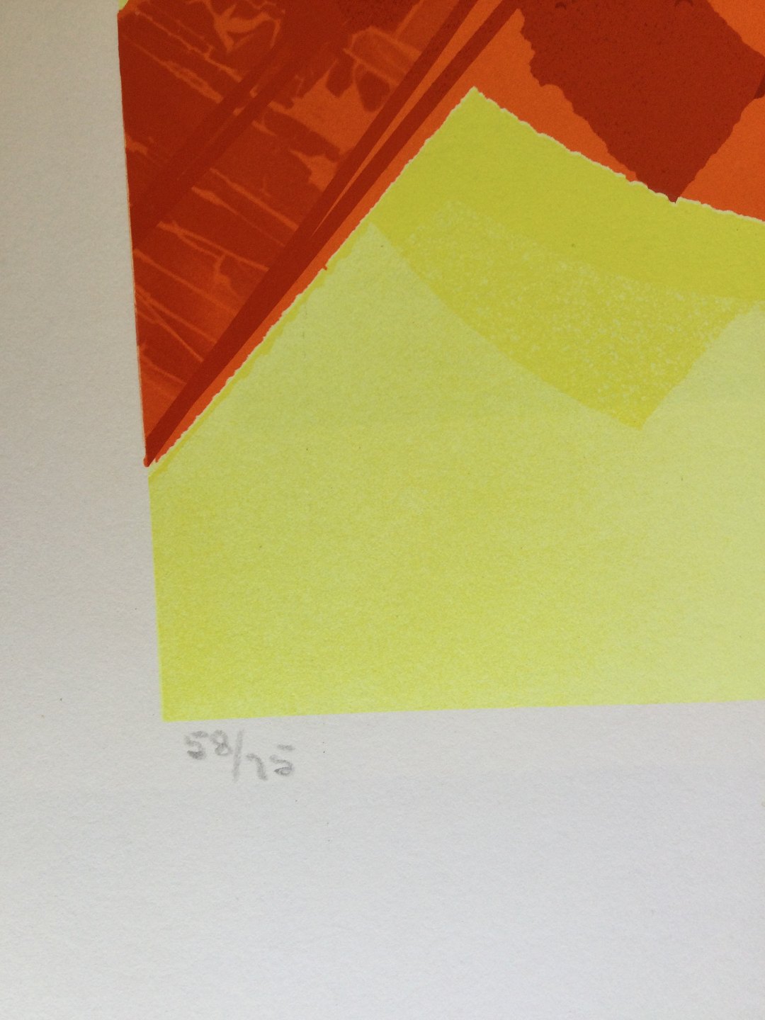 Text available in Danish: Farvelitografi af Finn Lohmann - Komposition 1976.
