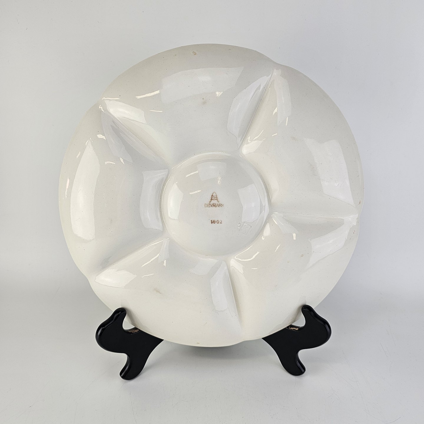 Rundt fad med seks rum i cremefarvet fajance fra stellet Alma