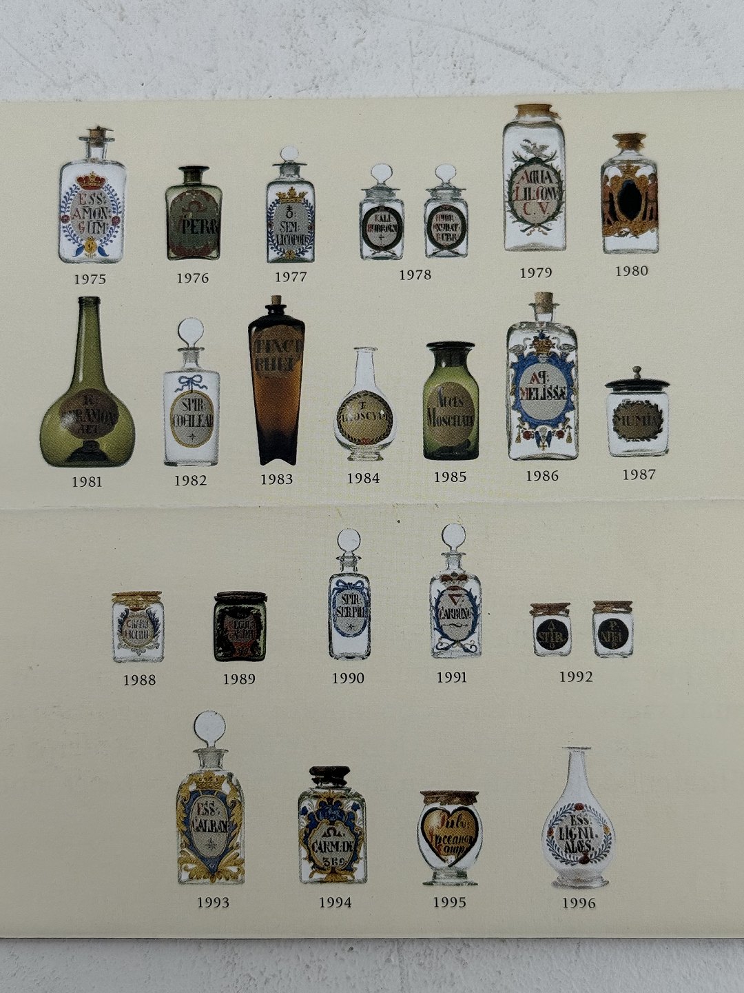 Holmegaard apotekerflaske fra 1985, Nuces Moschatæ (Muskatnød), Mål: 18x8cm, flaskerne er mundblæste kopier af originale gamle apotekerflasker, Signeret Hg85.