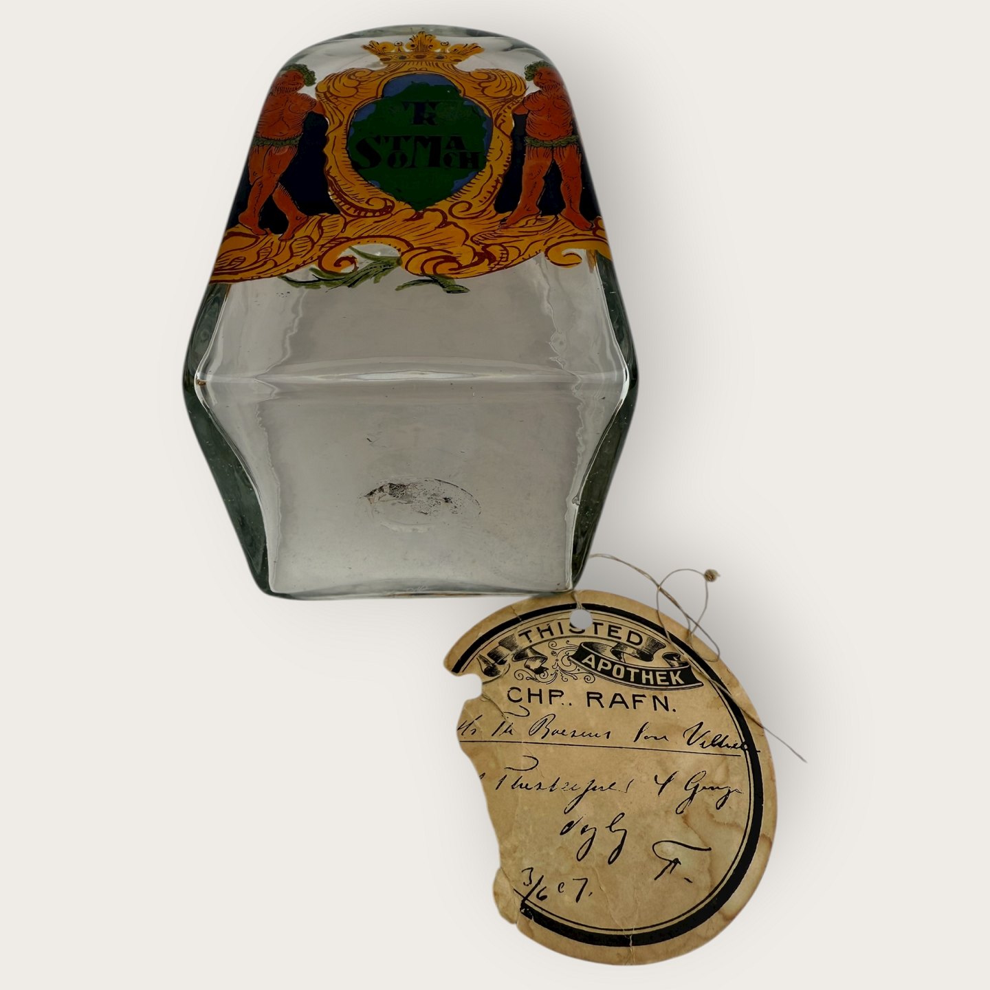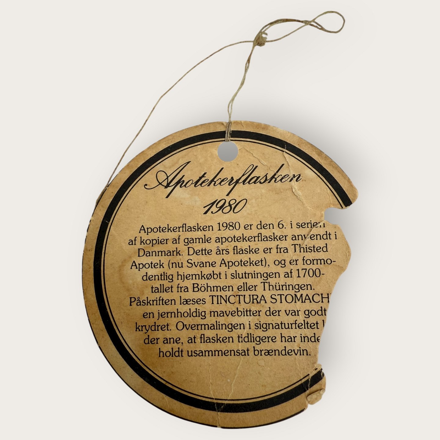 Holmegaard apotekerflaske fra 1980, Tinctura Stomach, Mål: 18x8x8cm, flaskerne er mundblæste kopier af originale gamle apotekerflasker, Signeret Hg80.