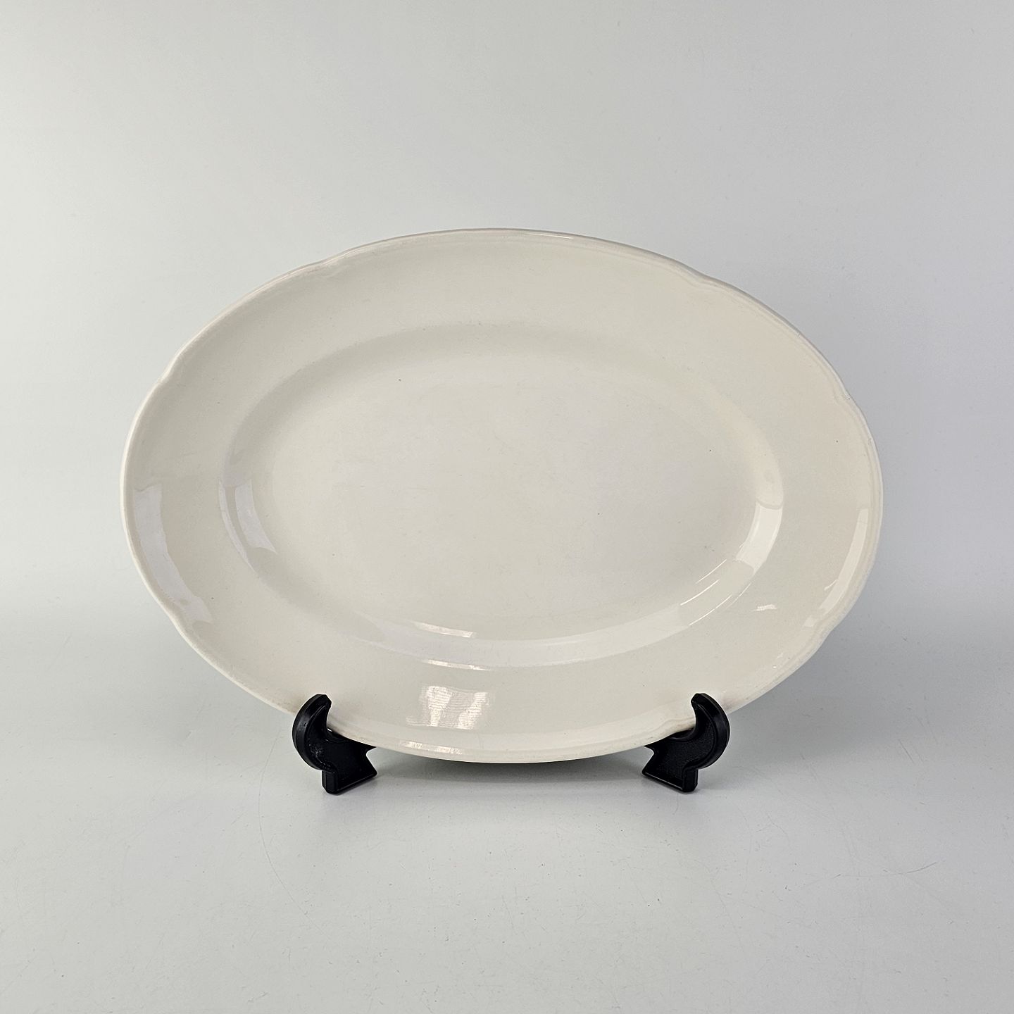 Lille ovalt fad i cremefarvet fajance fra stellet Alma
