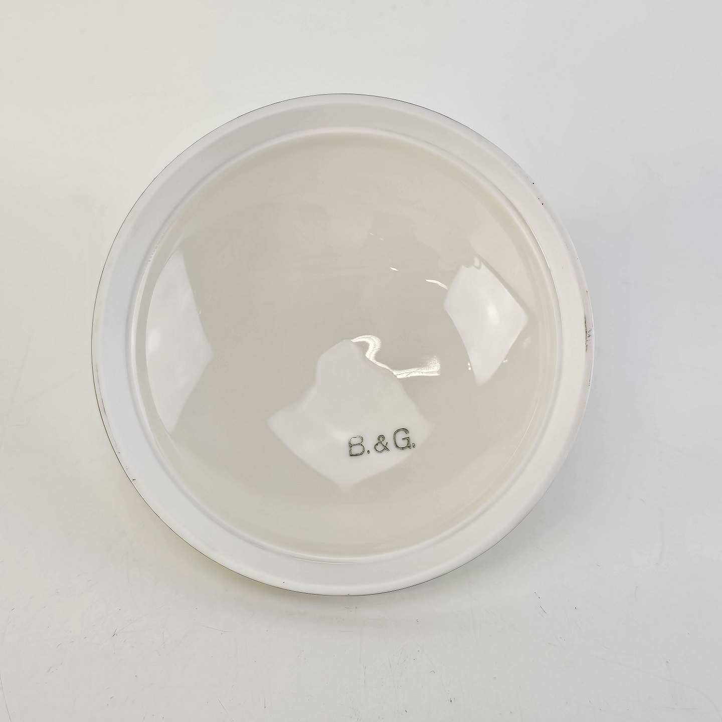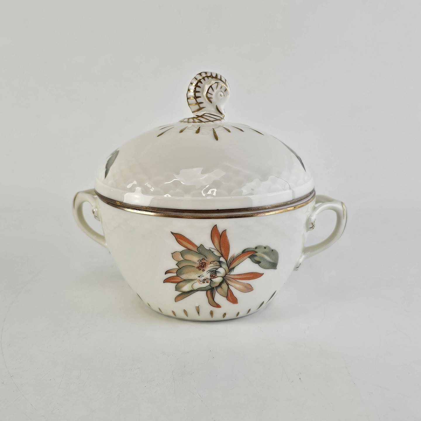 Kaktus er cremefarvet porcelæn i skælform, dekoreret med kaktusblomster og guldkant