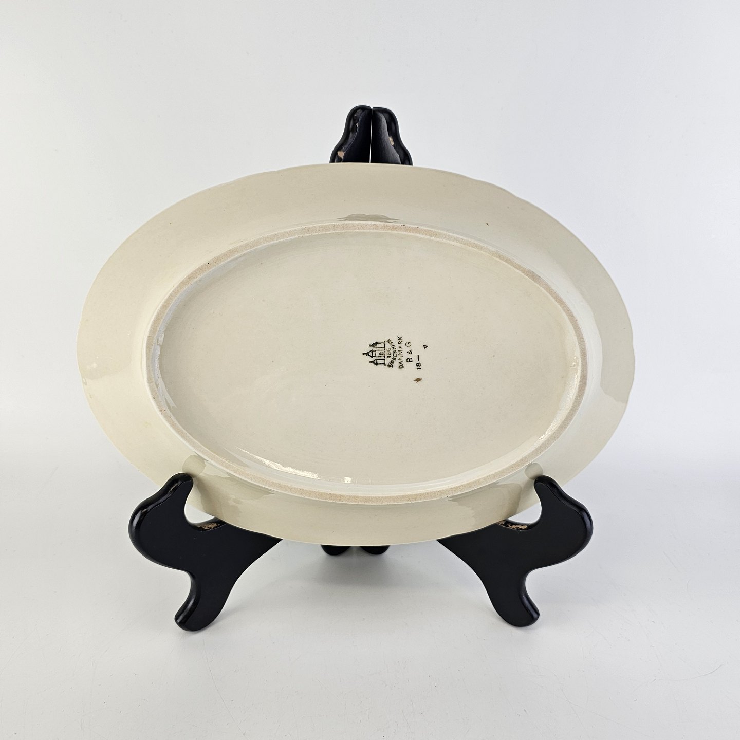 Balder er cremefarvet porcelæn i skælform, dekoreret med hyben og guldkant.