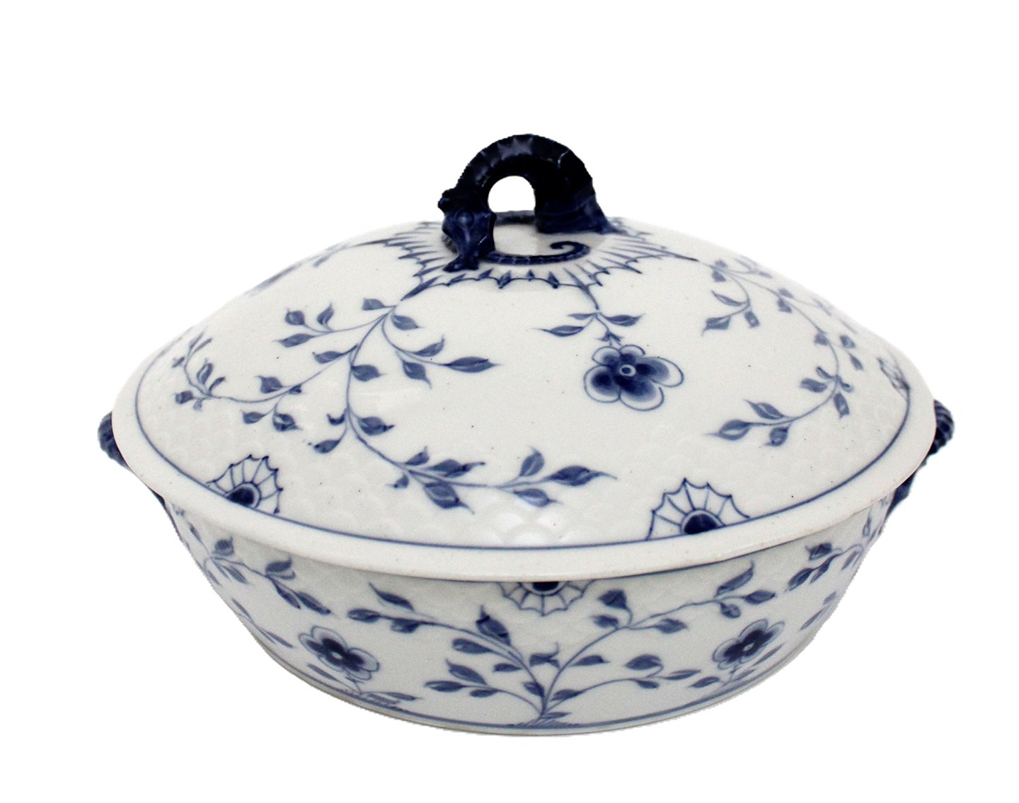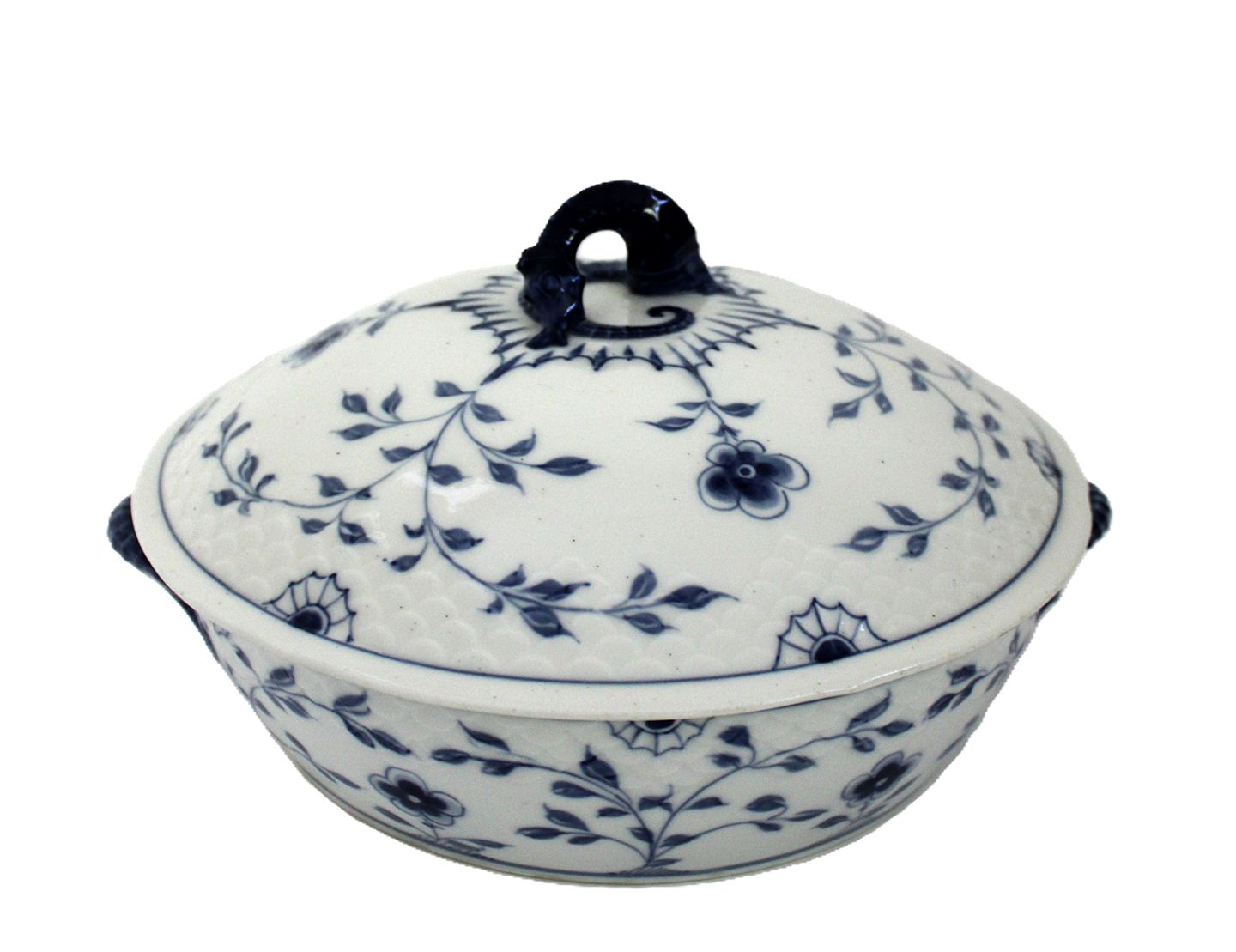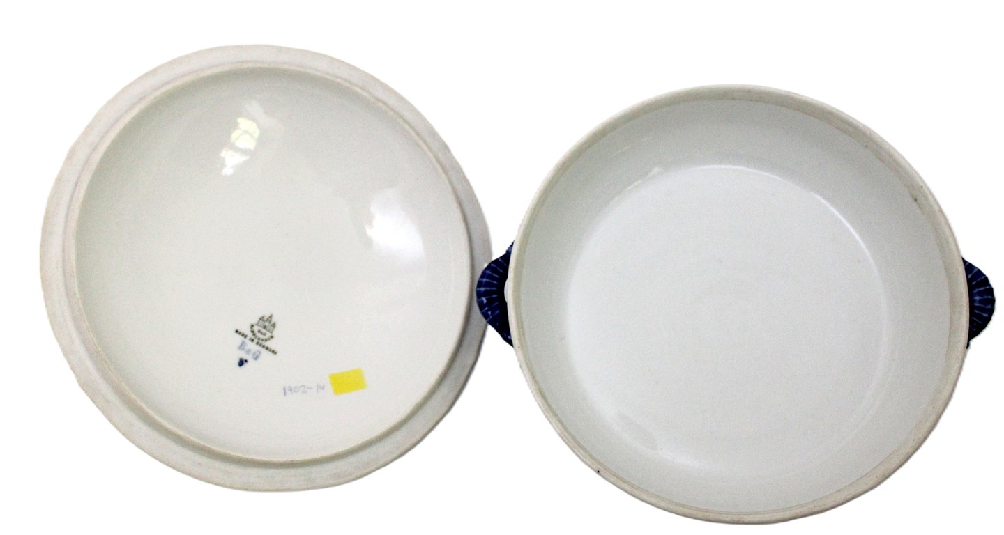 Bing & Grøndahl, Sommerfugl, Lågfad, terrin. Kartoffelskål med låg. Gratinskål med låg. Produceret i perioden 1902-1914. Med den tids småprikker i glasuren. I. sortering. Fin stand.